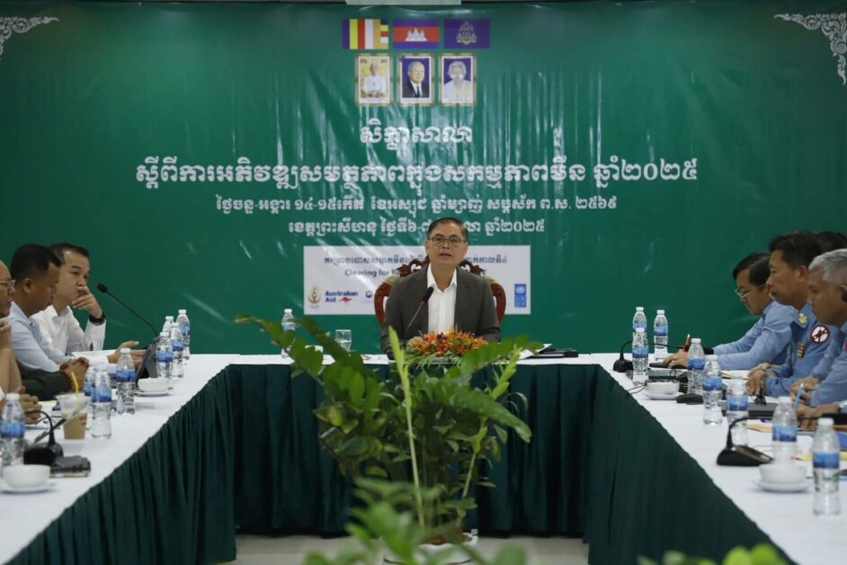 ខេត្តព្រះសីហនុ៖ ថ្ងៃទី ៦-៧ ខែតុលា ឆ្នាំ២០២៥ ឯកឧត្តមបណ្ឌិត គាំ រីបូន អនុប្រធានអាជ្ញាធរមីន បានដឹកនាំសិក្ខាសាលា ស្តីពីការអភិវឌ្ឍសមត្ថភាព ក្នុងសកម្មភាពមីនដែលមានសមាសភាពចូលរួមពី អាជ្ញាធរមីន តំណាងកងទ័ពជើងគោក CMAC, NPMEC, HALO Trust, NPA, CSHD, APOPO, MAG, UNDP និង ARMAC។