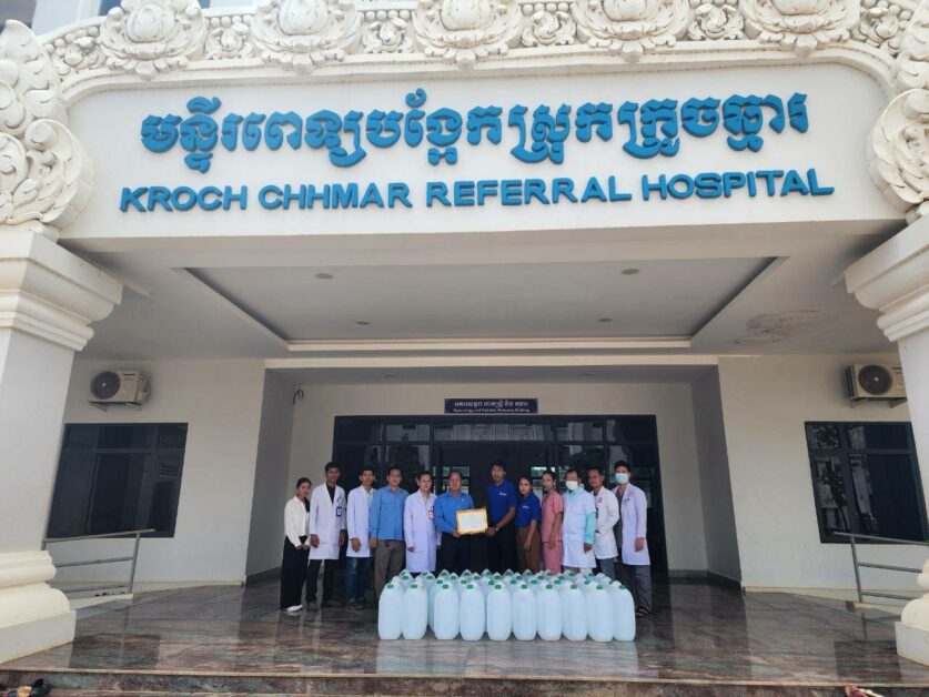 ដើម្បីចូលរួមចំណែកបន្តរទៅលើសុខភាពសាធារណៈជាមួយរាជរដ្ឋាភិបាលនិយាយជារួម និងនិយាយដោយឡែក តាមបណ្ដាក្រសួងស្ថាប័ណ្ណនានា និងតាមបណ្ដារអង្គភាពចំណុះក្រសួង ក៏ដូចជាតាមមន្ទីពេទ្យនានា នៅថ្ងៃទី២៦ខែឧសភា នេះសិប្បកម្ម ក្រុមហ៊ុន ដាវីស៊ីអេច បានបន្តផ្ដល់ជូននូវអាល់កុលទឹកជូនដល់មន្ទីពេទ្យព្រះកេតុមាលា នូវអាល់កុលទឹកចំនួន៣០០លីត្រ និងផ្ដល់ជូនដល់ការិយាល័យសុខាភិបាលស្រុកប្រតិបត្ត ចំនួន១២០០លីត្រ ដើម្បីចែកចាយបន្តដល់មន្ទីពេទ្យបង្អែកស្រុក និងមណ្ឌលសុខភាពទាំង១២ យកទៅប្រើប្រាស់ និងរួមចំណែកការពារអនាម័យសុខភាពដល់មន្រ្តី បុគ្គលិក និងបងប្អូនប្រជាពលរដ្ឋ ដែលមកទទួលសេវាសាធារណៈ។