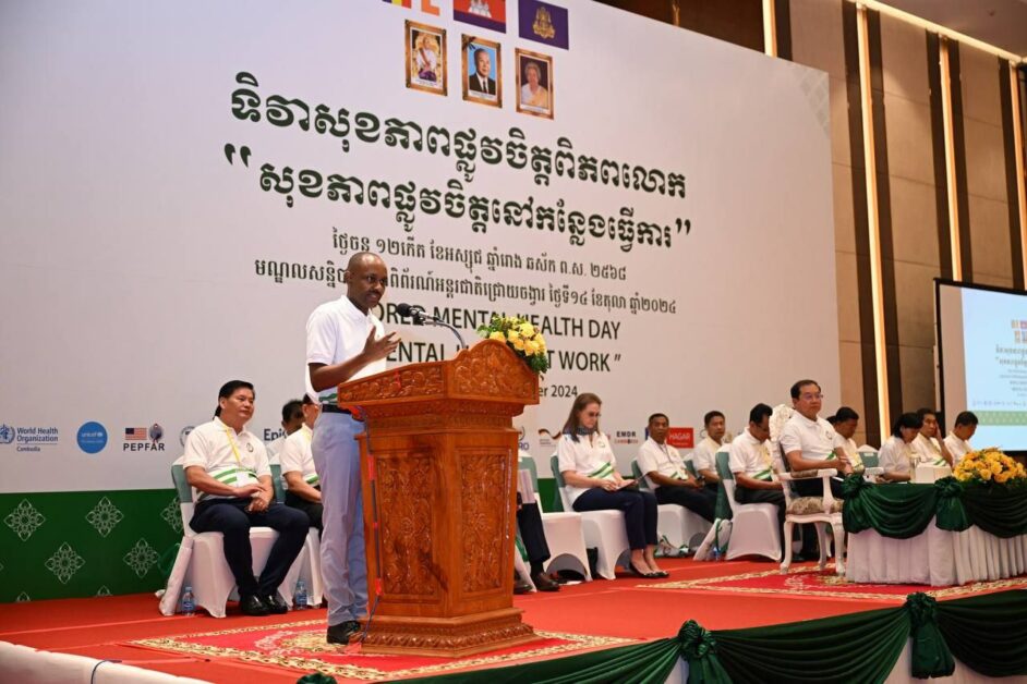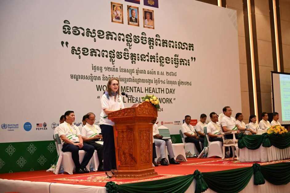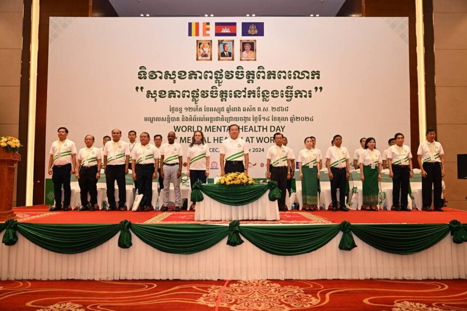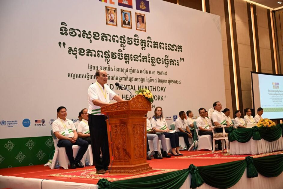 រាជធានីភ្នំពេញ៖ នេះជាការថ្លែងរបស់ឯកឧត្តមសាស្រ្តាចារ្យ ឈាង រ៉ា រដ្ឋមន្រ្តីក្រសួងសុខាភិបាល ក្នុងឱកាសឯកឧត្តមអញ្ជើញជាអធិបតីក្នុងពិធីអបអរសារទរទិវាសុខភាពផ្លូវចិត្តពិភពលោក ក្រោមប្រធានបទ «សុខភាពផ្លូវចិត្តក្នុងកន្លែងធ្វើការ»កាលពីព្រឹកថ្ងៃទី១៤ ខែតុលា ឆ្នាំ២០២៤ នៅ មណ្ឌលសន្និបាតនិងពិពរណ៍អន្តរជាតិជ្រោយចង្វារ។