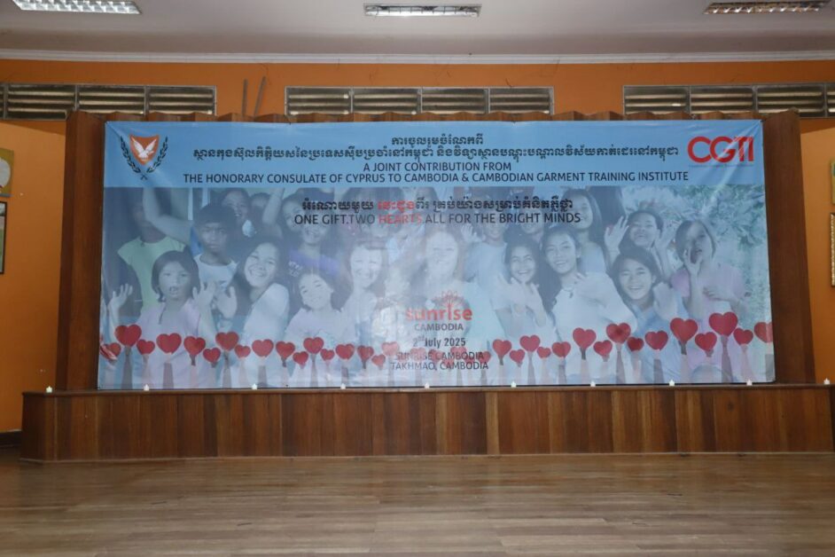 ស្ថានកុងស៊ុលនៃសាធារណរដ្ឋស៊ីប ប្រចាំកម្ពុជា ដឹកនាំដោយឯកឧត្តម សាឡា អ៊ីស្សា Salah Essa រួមនឹងវិទ្យាស្ថានបណ្តុះបណ្តាលវិស័យកាត់ដេរកម្ពុជា ( CGTI ) ដឹកនាំដោយលោក Andrew Tey នាយកវិទ្យាស្ថាន បានសហការផ្តល់អំណោយទូរដាក់សម្ភារៈសិក្សាចំនួន ៤៨ ជូនដល់អង្គការអរុណរះកម្ពុជា Sunrise Cambodia ដែលជាមជ្ឈមណ្ឌលអប់រំ និងថែទាំសិស្ស នៅក្រុងតាខ្មៅ ខេត្តកណ្តាល។