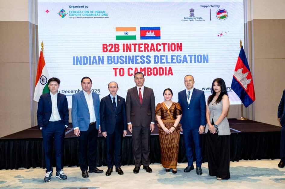 កិច្ចប្រជុំការជួបផ្គូផ្គងអាជីវកម្ម (B2B Interaction)ឥណ្ឌា–កម្ពុជា ក្នុងគោលបំណងបន្តពង្រឹង និងលើកកម្ពស់ទំនាក់ទំនងពាណិជ្ជកម្ម និងសេដ្ឋកិច្ចទ្វេភាគីរវាងប្រទេសឥណ្ឌា និងព្រះរាជាណាចក្រកម្ពុជា រួមមានសហព័ន្ធអង្គការនាំចេញឥណ្ឌា (Federation of Indian Export Organisations – FIEO) ដោយសហការជាមួយស្ថានទូតឥណ្ឌាប្រចាំព្រះរាជាណាចក្រកម្ពុជា បានរៀបចំកិច្ចប្រជុំការជួបផ្គូផ្គងអាជីវកម្ម (B2B Interaction)ឥណ្ឌា–កម្ពុជា ជាមួយតំណាងសហគមន៍ធុរកិច្ចកម្ពុជា នៅសណ្ឋាគារ Fairfield by Marriott ទីក្រុងភ្នំពេញ។