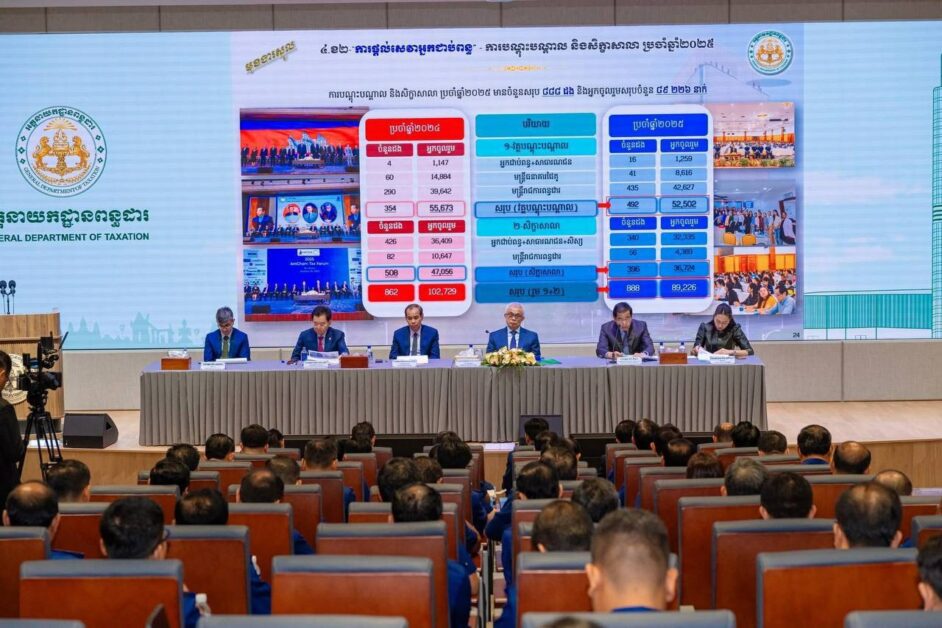 របាយការណ៍ របស់អគ្គនាយកដ្ឋានពន្ធដារ នៃការប្រមូលចំណូលពន្ធដារឆ្នាំ២០២៥ ត្រូវបានបង្ហាញក្នុងកិច្ចប្រជុំបូកសរុបលទ្ធផលការងារ ប្រមូលចំណូលពន្ធប្រចាំឆ្នាំ២០២៥ ព្រមទាំងទិសដៅអនុវត្តបន្តរបស់អគ្គនាយកដ្ឋានពន្ធដារ ក្រោមអធិបតីភាពអគ្គបណ្ឌិតសភាចារ្យ អូន ព័ន្ធមុនីរ័ត្ន ឧបនាយករដ្ឋមន្ដ្រី រដ្ឋមន្ត្រីក្រសួងសេដ្ឋកិច្ច និងហិរញ្ញវត្ថុ នៅអគារអគ្គនាយកដ្ឋានពន្ធដារថ្មី (Tax Tower) ដែលស្ថិតនៅតំបន់ជ្រោយចង្វារ។