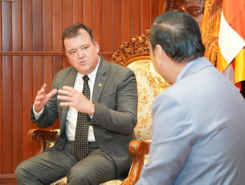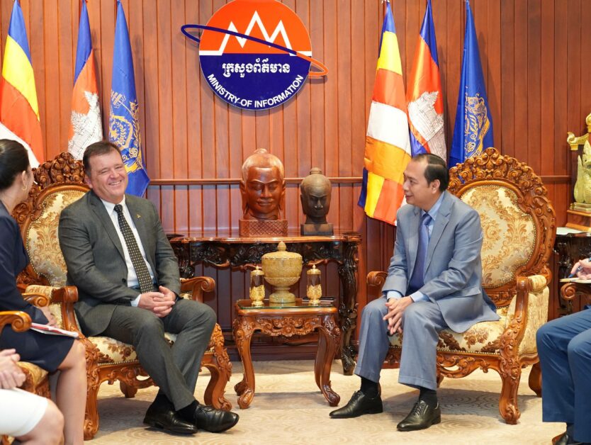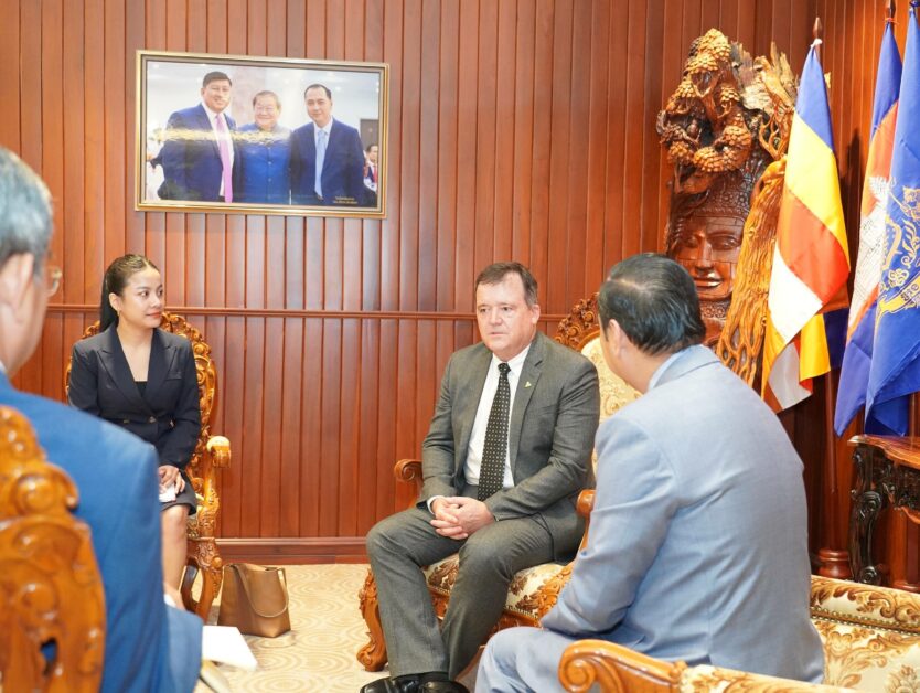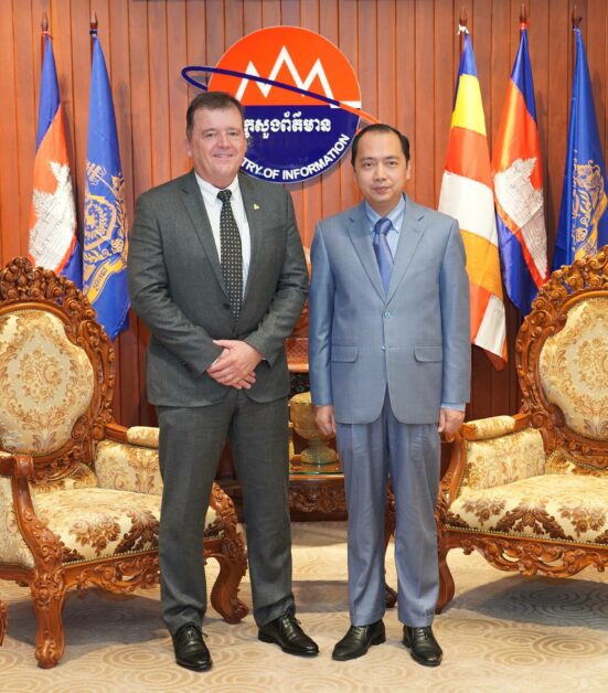 (ភ្នំពេញ)៖ ក្នុងឱកាសអញ្ជើញចូលជួបសំដែងការគូរសម និងពិភាក្សាការងារជាមួយ ឯកឧត្តម នេត្រ ភក្ត្រា រដ្ឋមន្ត្រីក្រសួងព័ត៌មាន នៅរសៀលថ្ងៃទី២៤ ខែវិច្ឆិកា ឆ្នាំ២០២៥ នាទីស្តីការក្រសួង លោក Michiel Oerlemans អគ្គនាយកថ្មីនៃក្រុមហ៊ុន Cambrew (Carlsberg Cambodia) បានបញ្ជាក់ពីការតាំងចិត្តខ្ពស់ដើម្បីចូលរួមចំណែកធ្វើការវិនិយោគនៅប្រទេសកម្ពុជា ដើម្បីអភិវឌ្ឍសេដ្ឋកិច្ចប្រទេសកម្ពុជា ជាពិសេសបង្កើតឱកាសការងារជូន ដល់ប្រជាជនកម្ពុជា។