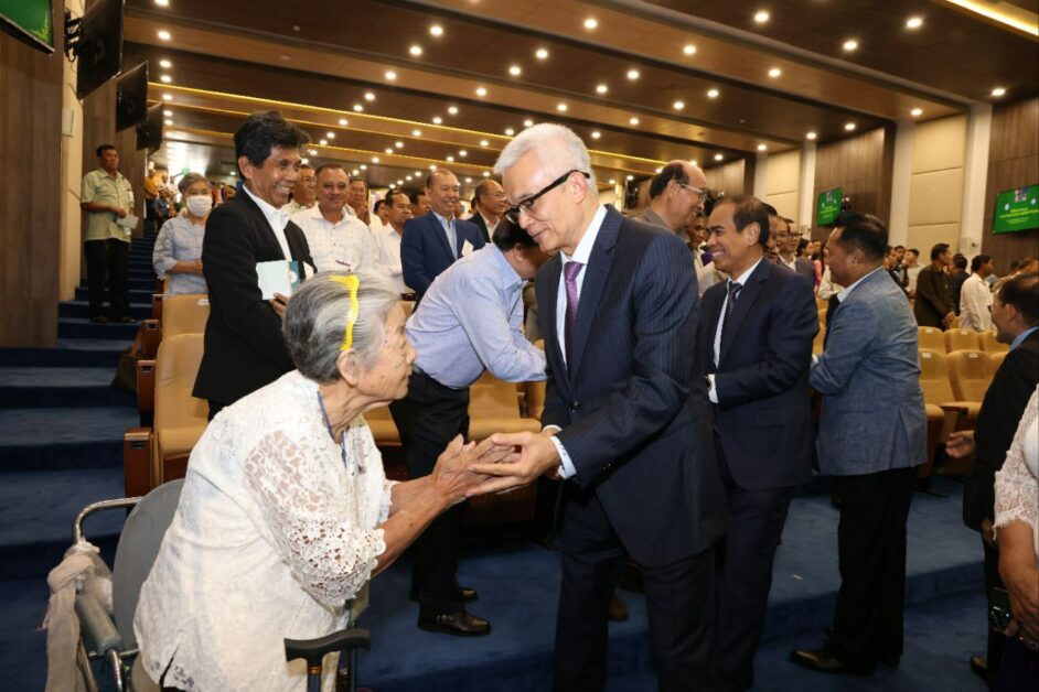 អគ្គបណ្ឌិតសភាចារ្យ អូន ព័ន្ធមុនីរ័ត្ន ឧបនាយករដ្ឋមន្ត្រី រដ្ឋមន្រ្តីក្រសួងសេដ្ឋកិច្ចនិងហិរញ្ញវត្ថុ ជួបសំណេះសំណាល ផ្តល់អំណោយ និងបំពាក់គ្រឿងឥស្សរិយយសជូននិវត្តជនក្រសួងសេដ្ឋកិច្ច ក្នុងឱកាសបុណ្យចូលឆ្នាំប្រពៃណីជាតិខ្មែរ