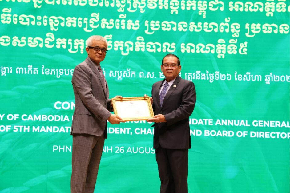 អគ្គបណ្ឌិតសភាចារ្យ អូន ព័ន្ធមុនីរ័ត្នឧបនាយករដ្ឋមន្រ្តី, រដ្ឋមន្ត្រី ក្រសួងសេដ្ឋកិច្ច និង ហិរញ្ញវត្ថុអញ្ជើញជាអធិបតីក្នុងពិធីបិទមហាសន្និបាតបូកសរុបការងារ និង បិទបញ្ចប់អាណត្តិទី ៤ របស់សហព័ន្ធស្រូវ-អង្ករកម្ពុជា