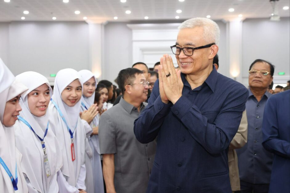 មានប្រសាសន៍សំណេះសំណាលឯកឧត្តមអគ្គបណ្ឌិតសភាចារ្យអូនព័ន្ធមុនីរ័ត្នបានណែនាំដល់ក្មួយៗទាំងអស់នឹងបន្តខិតខំជម្នះឧបស័គ្គទាំងឡាយ ក្នុងការ- សិក្សានៅសកលវិទ្យាល័យ ឬ នៅតាមវិទ្យាស្ថាននានា រហូតបញ្ចប់ការសិក្សារបស់ខ្លួន, ទាំង នៅថ្នាក់បរិញ្ញាបត្រ និង នៅកម្រិតបណ្តុះបណ្តាលវិជ្ជាជីវៈ, ដើម្បីមានមូលដ្ឋានគ្រឹះរឹងមាំ ក្នុង ការស្វែងរកការងារល្អ ដើម្បីចិញ្ចឹមជីវិតផ្ទាល់ខ្លួន និង មានលទ្ធភាពជួយដល់ក្រុមគ្រួសារ និង សហគមន៍របស់ខ្លួន ទៅអនាគត ។ ការសិក្សានៅថ្នាក់មធ្យមសិក្សាទុតិយភូមិ ដែលក្មួយៗទើប បានបញ្ចប់ដោយជោគជ័យនេះ គឺជាការសិក្សាចំណេះដឹងទូទៅ, មិនមែនជាការសិក្សាដែលផ្តោត លើជំនាញវិជ្ជាជីវៈនោះទេ; ដូច្នេះ, បើក្មួយៗមិនបន្តការសិក្សានៅថ្នាក់ឧត្តមសិក្សា ឬ សិក្សា ជំនាញវិជ្ជាជីវៈអ្វីមួយ ឲ្យបានច្បាស់លាស់នោះទេ, ក្មួយៗនឹងជួបការលំបាក ក្នុងការស្វែងរក ការងារ ឬ ចាប់ផ្តើមអាជីពណាមួយ នាពេលខាងមុខ ។ ក្នុងន័យនេះ,ឯកឧត្តមអគ្គបណ្ឌិតសភាចារ្យឧបនាយករដ្ឋមន្ត្រីបាន អំពាវនាវ និង លើកទឹកចិត្តក្មួយៗទាំងអស់ បន្តការសិក្សារបស់ខ្លួន តាមរយៈអាហារូបករណ៍ ដែលបានផ្តល់ជូន ឬ តាមរយៈមធ្យោបាយដទៃទៀត ។ដោយមើលឃើញ និង ទទួលស្គាល់នូវគុណតម្លៃ និង សក្តានុពលរបស់យុវជន, រាជ- រដ្ឋាភិបាល សម្រាប់នីតិកាលទី ៧ នៃរដ្ឋសភា, ក្រោមការដឹកនាំដ៏ត្រឹមត្រូវ, ស្វាហាប់ និង ឈ្លាសវៃ របស់ សម្ដេចមហាបវរធិបតី ហ៊ុន ម៉ាណែត នាយករដ្ឋមន្ត្រី នៃព្រះរាជាណាចក្រ កម្ពុជា, អនុប្រធានគណបក្សប្រជាជនកម្ពុជា និង ជាប្រធានយុវជនគណបក្សប្រជាជន កម្ពុជាថ្នាក់កណ្តាល, បានផ្តល់ឱកាសជាច្រើនដល់យុវជន ដែលមានសមត្ថភាពពិតប្រាកដ ដើម្បីបន្តចូលរួមដឹកនាំក្រសួង-ស្ថាប័ន, រាជធានី-ខេត្ត, ក្រុង-ស្រុក-ខណ្ឌ, មន្ទីរ និង អង្គភាព នានា, សំដៅជំរុញសម្ទុះនៃការអភិវឌ្ឍប្រទេសជាតិ ឲ្យកាន់តែលឿន និង បំពេញសេចក្តី- ត្រូវការរបស់ប្រជាពលរដ្ឋ ឲ្យកាន់តែរហ័ស ប្រកបដោយប្រសិទ្ធភាព និង ស័ក្តិសិទ្ធភាពខ្ពស់ ។