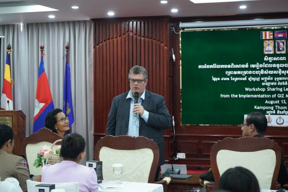 ឯកឧត្តម ជា សំណាង អនុប្រធានក្រុមប្រឹក្សាស្តារអភិវឌ្ឍន៍វិស័យកសិកម្មនិងជនបទបានមានប្រសាសន៍ចែករំលែកបទពិសោធន៍ ស្ដីពីការអនុវត្តគម្រោងពហុវិស័យសន្តិសុខស្បៀង និងអាហារូបត្ថម្ភ (MUSEFO) នៅខេត្តកំពង់ធំ ដែលគម្រោងនេះក្រោមជំនួយថវិកាពីរដ្ឋាភិបាលនៃសហព័ន្ធអាល្លឺម៉ង់ តាមរយៈអង្គការ GIZ ។