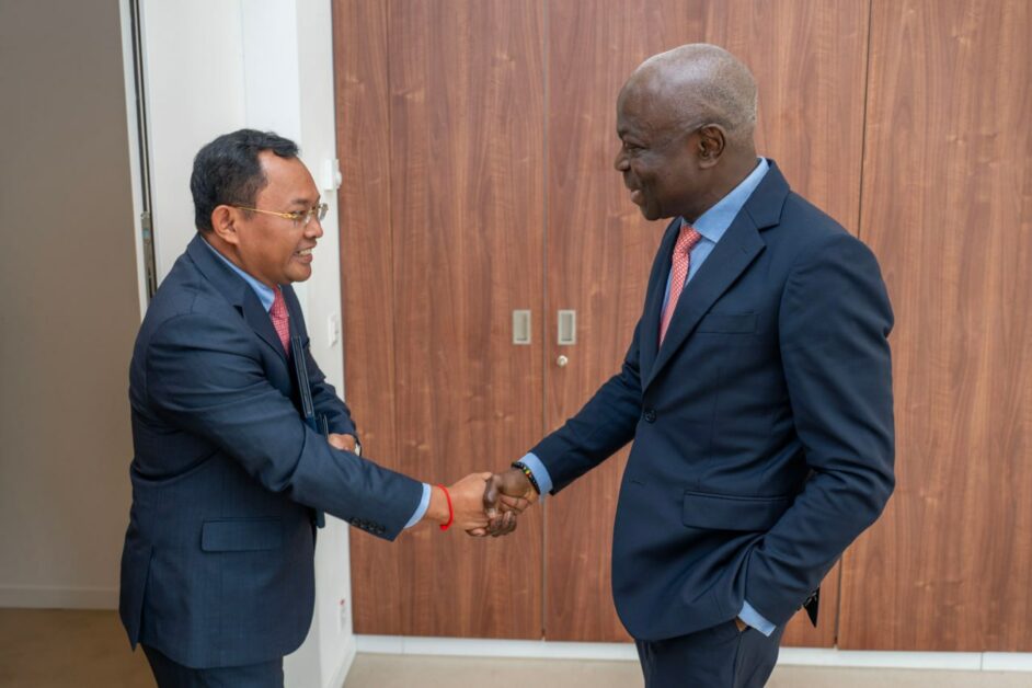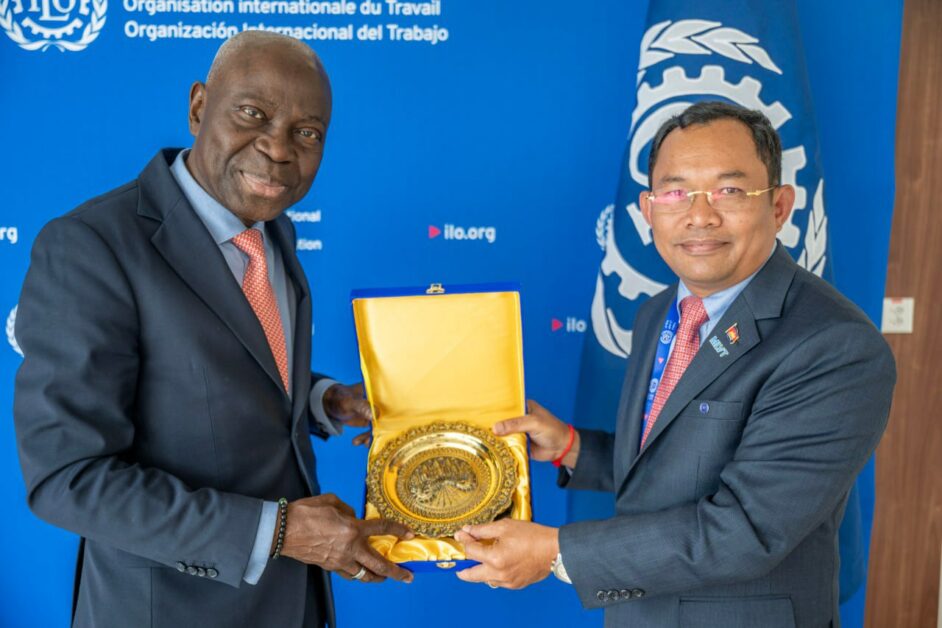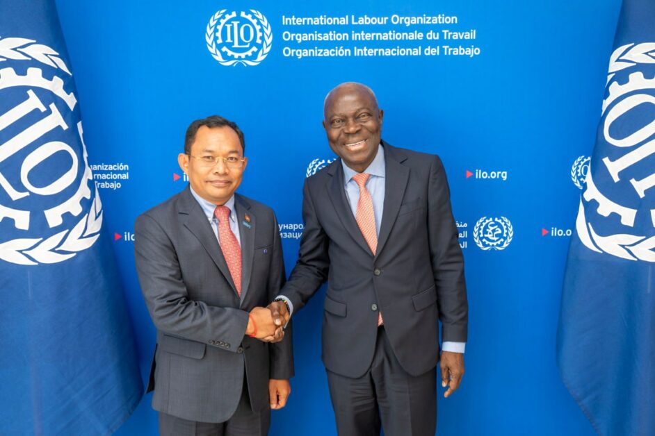 (ហ្ស៊ឺណែវ ប្រទេសស្វីស)៖ នារសៀលថ្ងៃទី៩ ខែមិថុនា ឆ្នាំ២០២៥ ឯកឧត្តម សោម ចំណាន រដ្ឋលេខាធិការ តំណាងដ៏ខ្ពង់ខ្ពស់ឯកឧត្តម ហេង សួរ រដ្ឋមន្រ្តីក្រសួងការងារ និងបណ្តុះបណ្តាលវិជ្ជាជីវៈ បានជួបពិភាក្សាការងារទ្វេភាគីជាមួយឯកឧត្តម Gilbert F. Houngbo អគ្គនាយកអង្គការអន្តរជាតិខាងការងារ (ILO) អំឡុងបំពេញបេសកកម្មចូលរួមសន្និសីទអន្ដរជាតិខាងការងារលើកទី១១៣ នៅទីស្នាក់ការអង្គការសហប្រជាជាតិ ទីក្រុងហ្ស៊ឺណែវ។