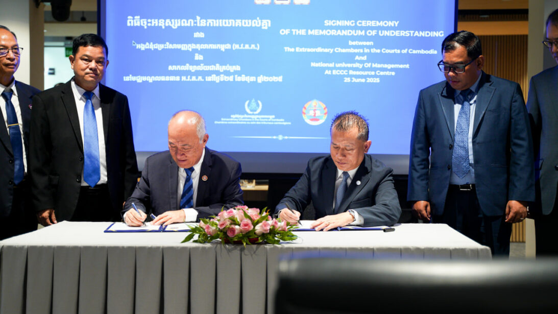 នៅថ្ងៃទី២៥ ខែមិថុនា ឆ្នាំ២០២៥ អង្គជំនុំជម្រះវិសាមញ្ញក្នុងតុលាការកម្ពុជា (អ.វ.ត.ក.) និងសាកលវិទ្យាល័យជាតិគ្រប់គ្រង (NUM) បានចុះអនុស្សរណៈនៃការយោគយល់គ្នា ស្តីពីកិច្ចសហប្រតិបត្តិការ នៃស្ថាប័នទាំងពីរ ដើម្បីចែករំលែកចំណេះដឹង និងបទពិសោធនៃដំណើរការកាត់ក្តីរបស់ អ.វ.ត.ក ដល់និស្សិតច្បាប់ នៃសាកលវិទ្យាល័យជាតិគ្រប់គ្រង។