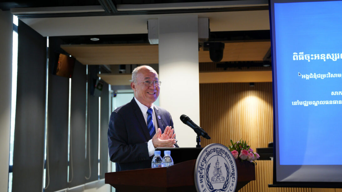 ពិធីចុះអនុស្សរណៈនៃការយោគយល់គ្នានេះបានប្រព្រឹត្តទៅក្រោមអធិបតីភាពរបស់ ឯកឧត្តម ក្រាញ់ តូនី រដ្ឋលេខាធិការទីស្តីការគណៈរដ្ឋមន្ត្រីនិងជាប្រធានរដ្ឋបាលស្តីទីនៃ អ.វ.ត.ក. និងឯកឧត្តមសាស្ត្រាចារ្យ បណ្ឌិត ហោ ប៉េង សាកលវិទ្យាធិការនៃសាកលវិទ្យាល័យជាតិគ្រប់គ្រងនៅមជ្ឈមណ្ឌលធនធាននៃអ.វ.ត.ក.។