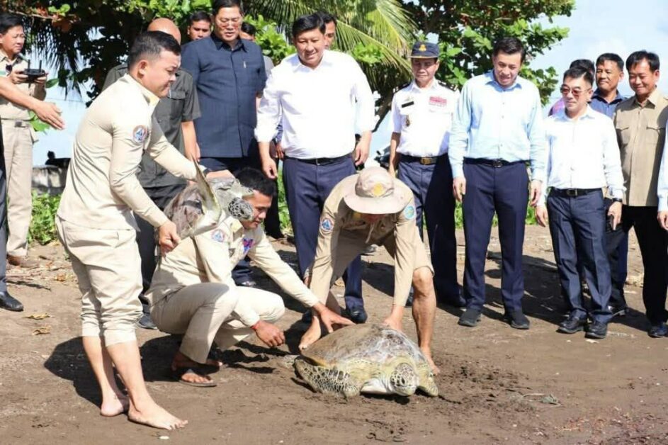 ការលែងអណ្តើកចូលសមុទ្រវិញនេះធ្វើឡើង ក្រោមអធិបតីភាព ឯកឧត្តម សាយ សំអាល់ ឧបនាយករដ្ឋមន្រ្តី រដ្ឋមន្រ្តីក្រសួងរៀបចំដែនដី នគរូបនីយកម្ម និងសំណង់ និងជាប្រធានក្រុមការងាររាជរដ្ឋាភិបាលចុះជួយមូលដ្ឋានខេត្តកែប នៅរសៀលថ្ងៃទី១៨ ខែវិច្ឆិកា ឆ្នាំ២០២៥។