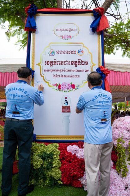 នៅពីព្រឹកថ្ងៃទី២៦ ខែឧសភា ឆ្នាំ២០២៥ រដ្ឋបាលខេត្តកំពតបានប្រារព្ធពិធីអបអរសាទរ អមដោយការដង្ហែពានជ័យលាភីដែលប្រជាពលរដ្ឋទូទាំងខេត្តបានបញ្ចប់ទាំងស្រុកនូវការបន្ទោបង់ពាសវាលពាសកាល (ODF)។ ក្នុងពិធីនេះ ឯកឧត្តម ម៉ៅ ធនិន អភិបាលខេត្តកំពតបានមានប្រសាសន៍ថា ថ្ងៃនេះពិតជាមានកិត្តិយសបំផុតដែលខេត្តកំពតទទួលបានជ័យលាភីជាខេត្តបញ្ចប់ការបន្ទោបង់ពាសវាលពាសកាល ដែលជាលទ្ធផលដ៏ប្រសើរក្នុងការអនុវត្តគោលនយោបាយរបស់រាជរដ្ឋាភិបាលលើផ្នែកអនាម័យបរិស្ថាន។ តាមរយៈពានរង្វាន់នេះ ថ្នាក់ដឹកនាំ និងប្រជាពលរដ្ឋខេត្តកំពតរំពឹងថា ភ្ញៀវជិតឆ្ងាយនឹងអញ្ជើញចូលមកកម្សាន្តកាន់តែច្រើនឡើងបបន្ថែមទៀត តាមរយៈភាពស្រស់ស្អាតតាមលំនៅស្ថាន សោភ័ណភាពនៅទីសាធារណៈ ហេដ្ឋារចនាសម្ព័ន្ធល្អប្រណិត និងការរក្សាអនាម័យបរិស្ថានបានគ្រប់រមណីយដ្ឋានជាដើម។ ឯកឧត្តមអភិបាលខេត្តបានបញ្ជាក់ថា ផ្អែកតាមការផ្លាស់ប្តូរផ្នត់គំនិត ក៏ដូចជាការប្រកាន់យកទម្លាប់ល្អរបស់អ្នករស់នៅទាំងតំបន់ជនបទ និងទីប្រជុំជន មកដល់ពេលនេះ ប្រជាពលរដ្ឋទាំង៩ក្រុង-ស្រុក ដែលមាន ៩៣ឃុំ-សង្កាត់ ស្មើនឹង ៤៩១ភូមិ ដែលមានប្រជាពលរដ្ឋចំនួន ១៦៥.៩៨៥គ្រួសារ កំពុងប្រើប្រាស់បង្គន់អនាម័យគ្រប់ៗគ្នា ពោលគឺបញ្ចប់ការបន្ទោបង់ពាសវាលពាសកាលបាន ១០០ភាគរយ។ ភាពជោគជ័យទាំងនេះកើតឡើងក្រោមការយកចិត្តទុកដាក់ និងគាំទ្រ ក៏ដូចជាការចង្អុលបង្ហាញពីថ្នាក់ដឹកនាំក្រសួងអភិវឌ្ឍន៍ជនបទ ដែលជាសេនាធិការរបស់រាជរដ្ឋាភិបាល ដោយបានផ្តោតសំខាន់លើការងារលើកកម្ពស់អនាម័យបរិស្ថាន។