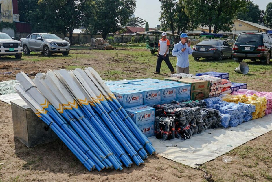 សូមជម្រាបជូនថា សម្ភារ និងគ្រឿងឧបភោគបរិភោគសម្រាប់ឧបត្ថម្ភទូក-ង ចំនួន២ របស់ខេត្តស្ទឹងត្រែង៖ ទឹកសុទ្ធ៖ ១០០កេស, ភេសជ្ជៈ (វើក) ៤០កេស, អង្ករ៖ ២០០គក, មីកញ្ចប់ ៤កេសធំ , ឯកសណ្ឋានកីឡាករអុំទូក ៦០០សម្រាប់(អាវ មួក និងខោ) ព្រមទាំងគ្រឿងឧបភោគបរិភោគ និងថវិកាមួយចំនួនទៀត។