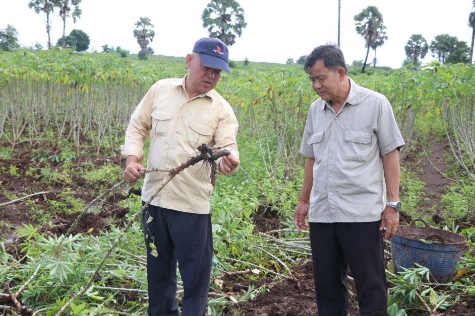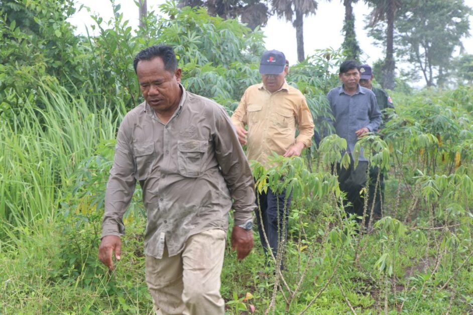 អភិបាលស្រុកតាំងគោក ដឹកនាំមន្ត្រីជំនាញ ចុះពិនិត្យស្ថានភាព ដំណាំដំឡូង របស់កសិករ ដែលរងផលប៉ះពាល់ ដោយសារ ទឹកភ្លៀង និងស្វែងរកដំណោះស្រាយជូន