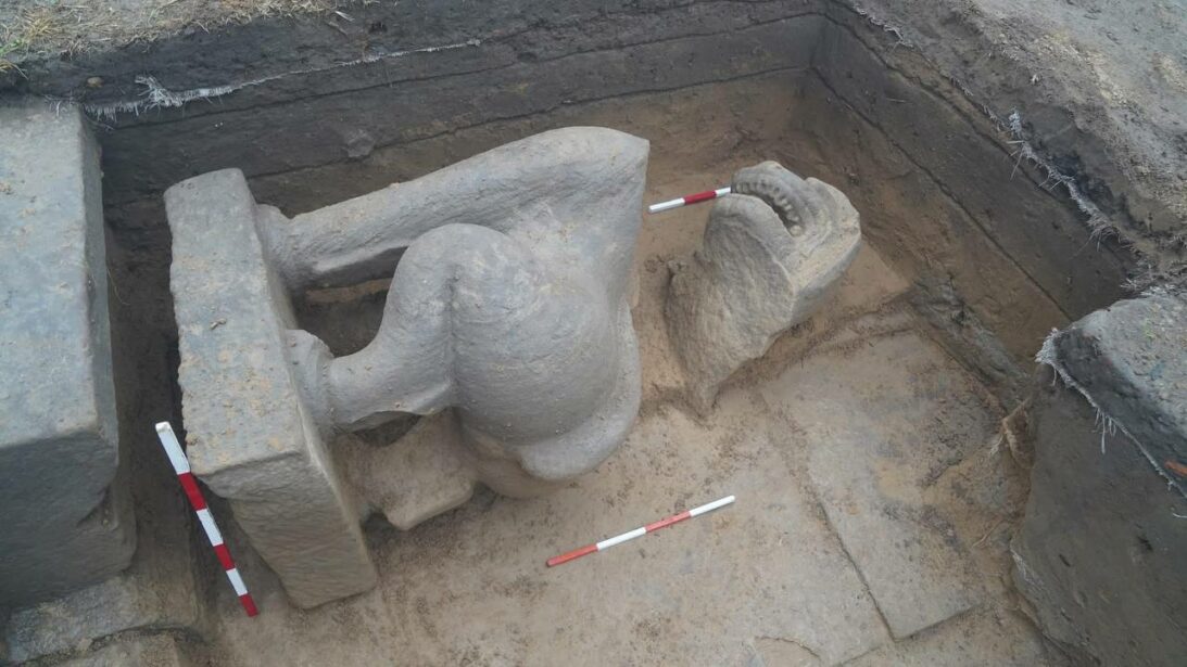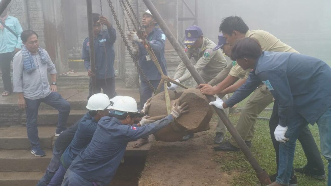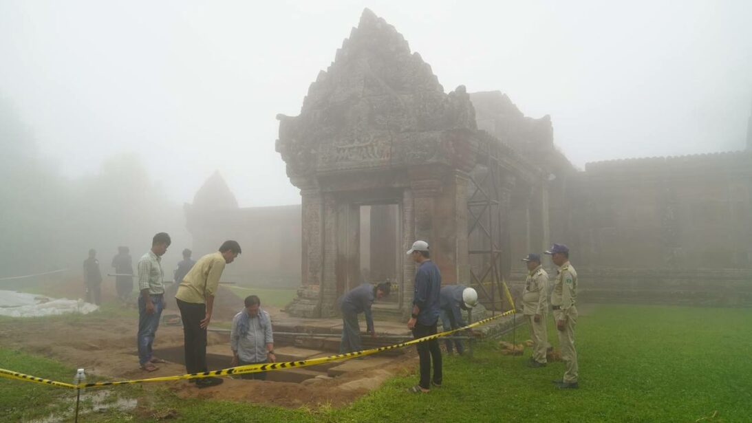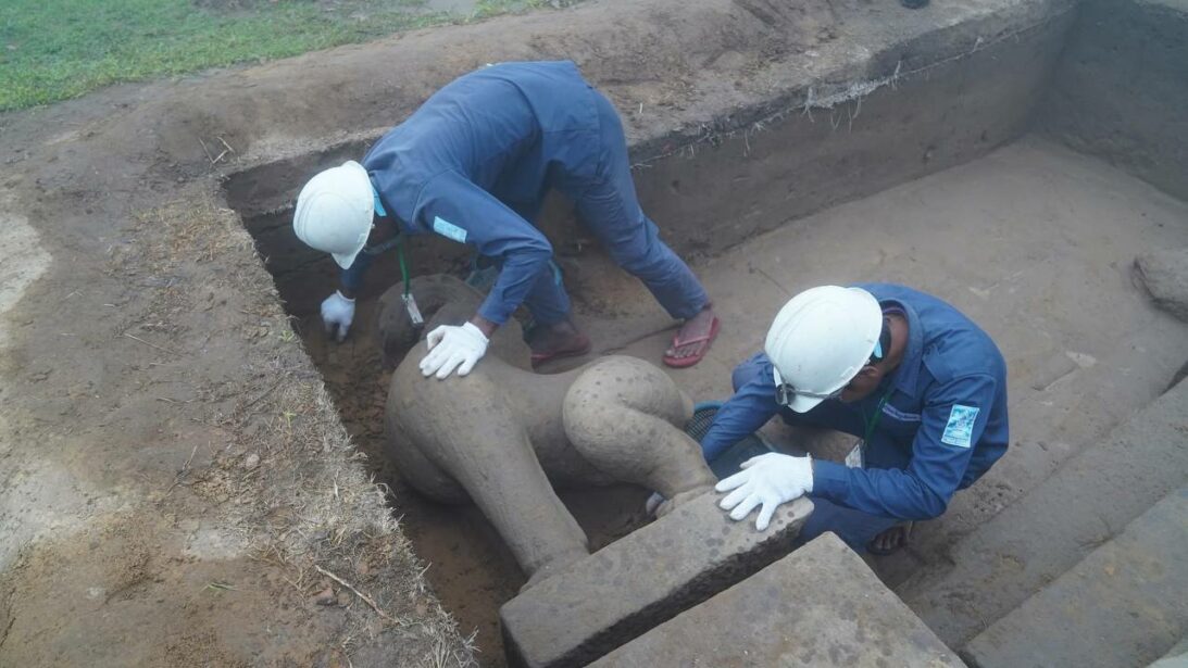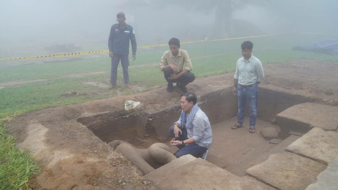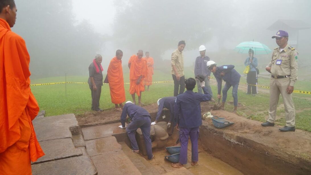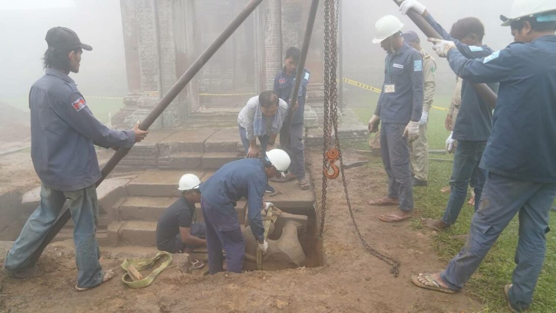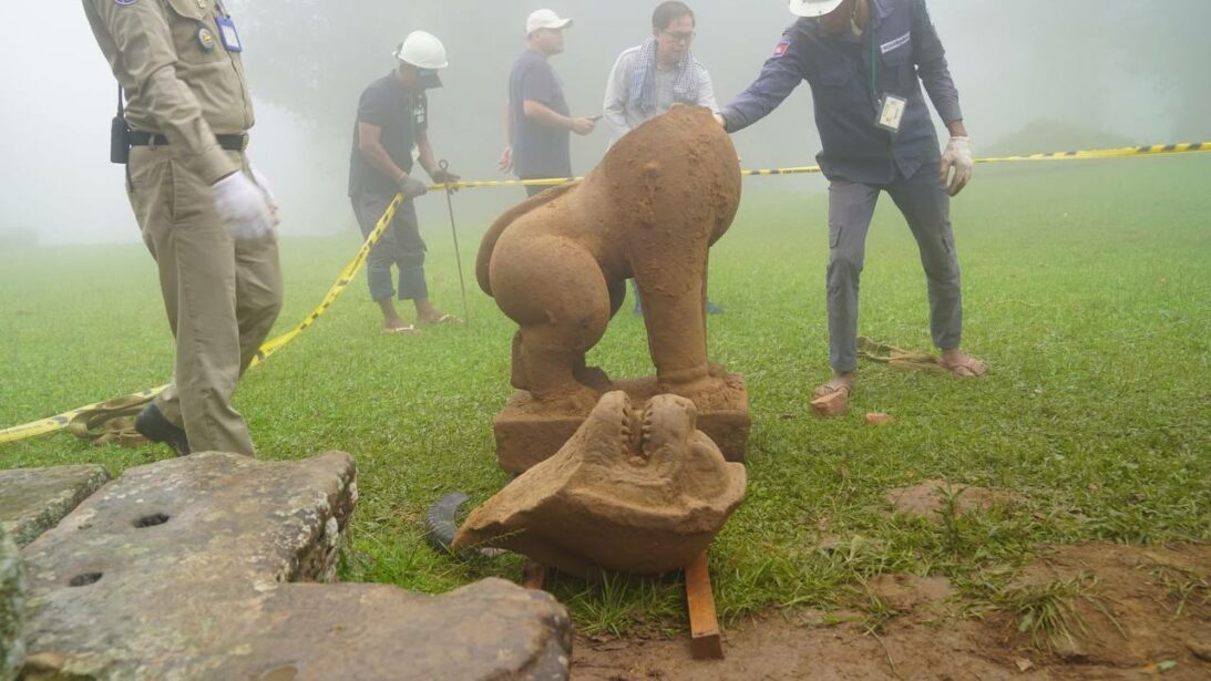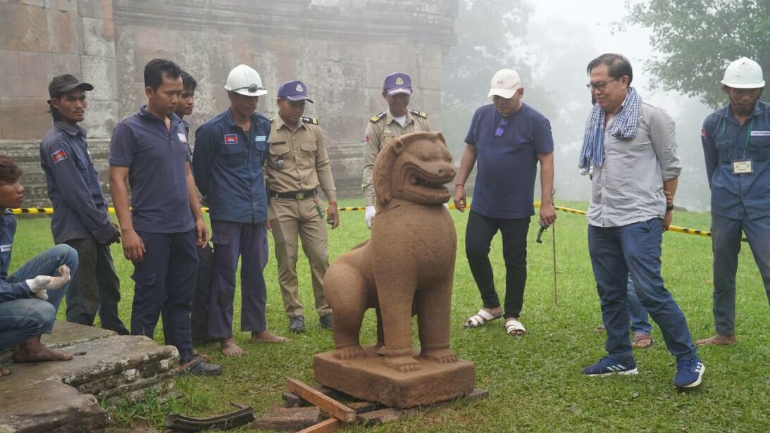 អាជ្ញាធរជាតិព្រះវិហារលើកចម្លាក់តោ១ ចេញពីក្នុងរណ្តៅកំណាយស្រាវជ្រាវ នៅខាងត្បូងខ្លោងទ្វាគោបុរៈទី៤ ប្រាសាទព្រះវិហារ
