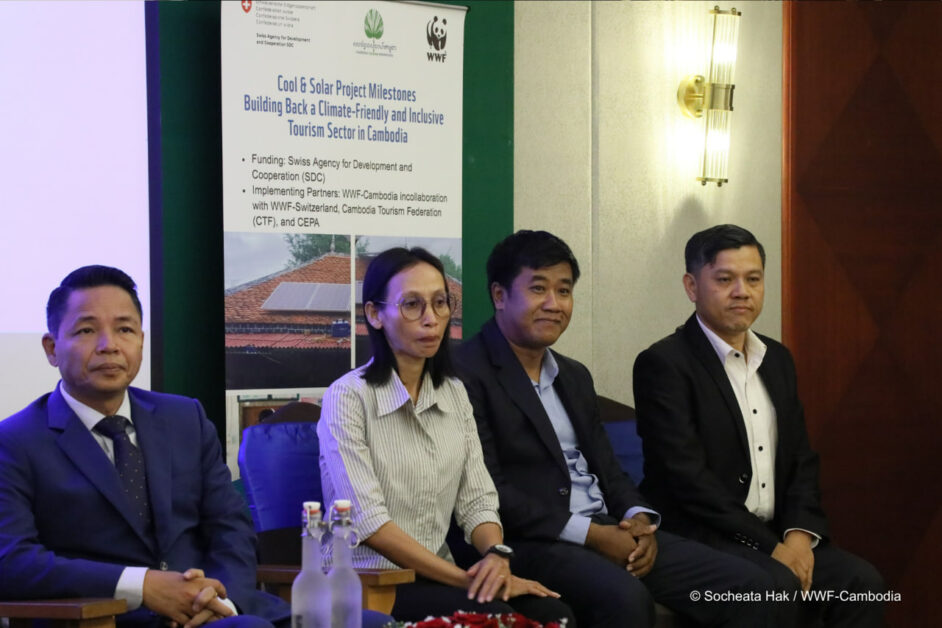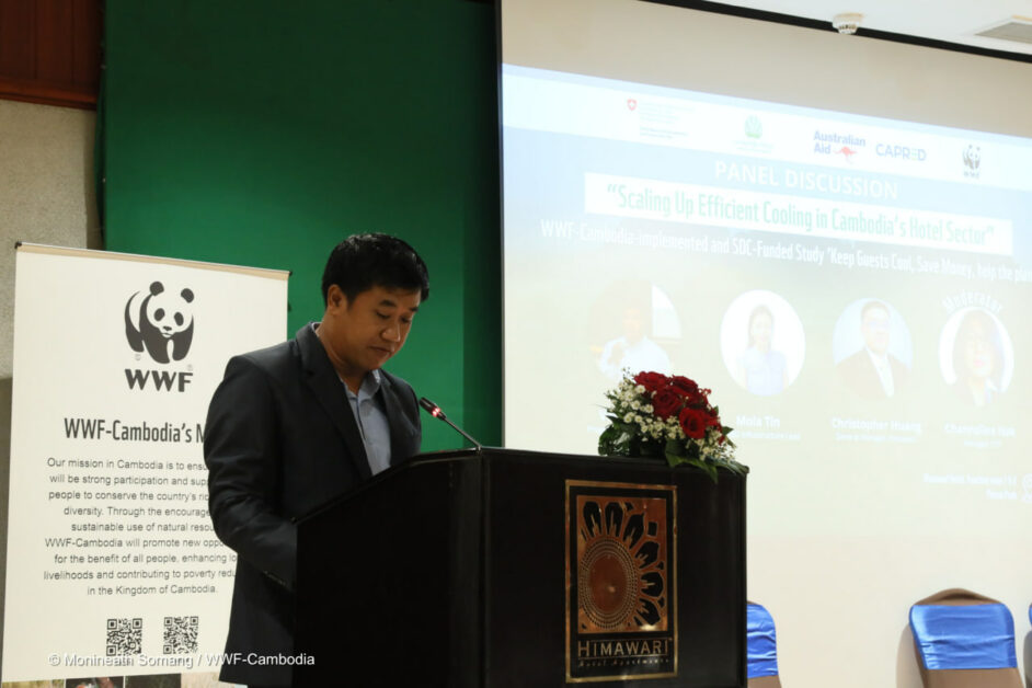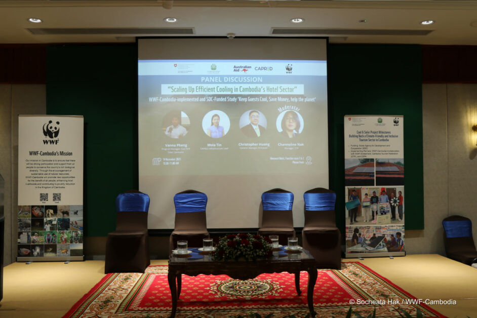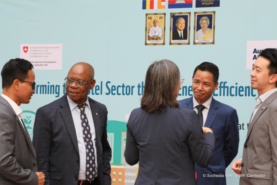 តាមរយៈគម្រោង Cool & Solar ដែលគាំទ្រដោយទីភ្នាក់ងារអភិវឌ្ឍន៍ និងសហប្រតិបត្តិការស្វីស (SDC) អង្គការ WWF-កម្ពុជា បានធ្វើការយ៉ាងជិតស្និទ្ធជាមួយសណ្ឋាគារឈានមុខគេដូចជា Raffles Le Royal, Sofitel Puketra, Himawari, Sunway និង Empress Angkor ដើម្បីស្វែងរកដំណោះស្រាយ ដែលធ្វើឱ្យ energy efficiency មានភាពប្រសើរឡើង និងជាលទ្ធផលគឺគួរជាទីចាប់អារម្មណ៍។ ការធ្វើការត្រួត ពិនិត្យប្រសិទ្ធភាពនៃថាមពលលម្អិតបានបង្ហាញថា សណ្ឋាគារអាចសន្សំបានរហូតដល់ ១០០,០០០ដុល្លាអាមេរិកក្នុងមួយឆ្នាំ តាមរយៈ efficiency upgrades ជាមួយនឹងការសងត្រលប់ក្នុងរយៈពេលខ្លី ត្រឹមតែ៣ ឆ្នាំប៉ុណ្ណោះ។ ទាំងនេះមិនមែនគ្រាន់តែជាតួលេខនោះទេ ប៉ុន្តែវាបានសបញ្ជាក់ឱ្យឃើញថាការប្រកួតប្រជែងអាជីវកម្ម ការកាត់បន្ថយកាបូន និងការរួមចំណែក គឺជាមាគ៌ានាំទៅរកកំណើនធម្មជាតិនៅកម្ពុជា។