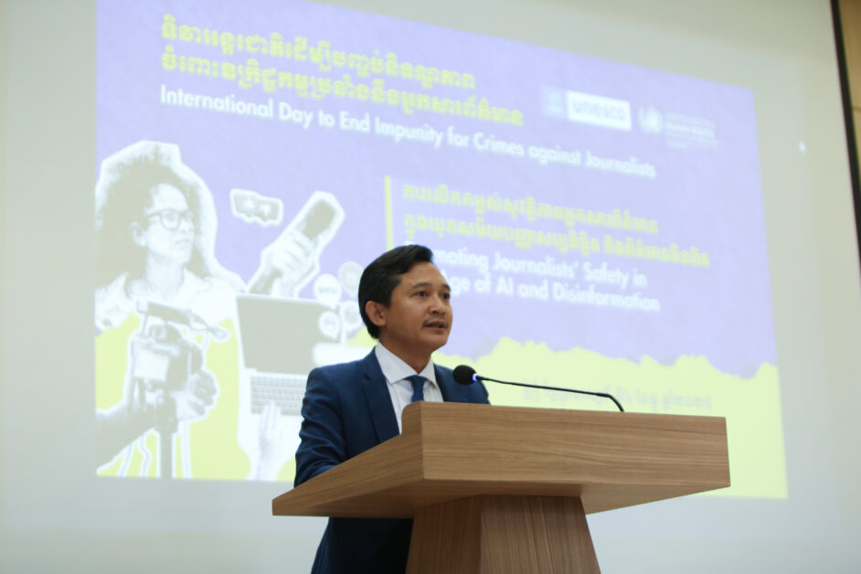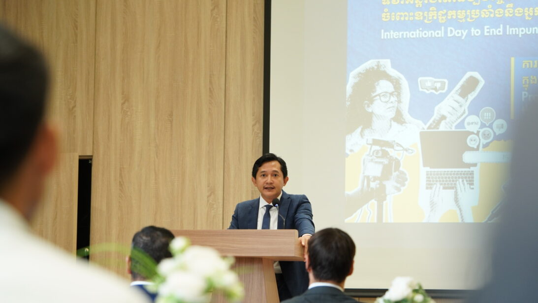 ឯកឧត្តមអ្នកនាំពាក្យក្រសួងព័ត៌មានថ្លែងបែបនេះ ក្នុងឱកាសទិវាអន្តរជាតិបញ្ចប់វប្បធម៌និទណ្ឌភាពចំពោះឧក្រិដ្ឋកម្មប្រឆាំងនឹងអ្នកសារព័ត៌មាន រៀបចំឡើងដោយការិយាល័យឧត្ដមស្នងការអង្គការសហប្រជាជាតិទទួលបន្ទុកសិទ្ធិមនុស្ស (OHCHR) និងអង្គការយូណេស្កូ (UNESCO) នារសៀលថ្ងៃទី ០៤ ខែធ្នូ ឆ្នាំ២០២៥ នៅរាជធានីភ្នំពេញ។ ក្នុងព្រឹត្តិការណ៍ ដែលមានការចូលរួមពីមន្ត្រីជាន់ខ្ពស់ក្រសួងព័ត៌មាន សមាជិកគណៈកម្មាធិការសិទ្ធិមនុស្សកម្ពុជា អ្នកសារព័ត៌មាន និងតំណាងសមាគម អង្គការ សង្គមស៊ីវិល ប្រមាណ៤០នាក់ ឯកឧត្តមអ្នកនាំពាក្យបានគូសបញ្ជាក់ជូនអ្នកចូលរួមទាំងអស់ថា កម្ពុជាប្រឆាំងនិទណ្ឌភាព ហើយបន្តលើកកម្ពស់យុត្តិធម៌ និងសុវត្ថិភាពសម្រាប់ការអនុវត្តសកម្មភាពក្នុងវិជ្ជាជីវៈសារព័ត៌មាន។ ឯកឧត្តមបានបន្ថែមថា ទាំងនេះជាកិច្ចខិតខំដែលមានសារៈសំខាន់ណាស់ ហើយជាអាទិភាពចំបងមួយរបស់ក្រសួងព័ត៌មាន និងរាជរដ្ឋាភិបាលកម្ពុជាចាប់តាំងពីអាណត្តិមុនៗ បន្តរហូតដល់អាណត្តិទី៧នេះ ហើយស្របពេលដែលក្រសួងបានបន្តផ្តល់ការយកចិត្តទុកដាក់ខ្ពស់ ក្នុងការដោះស្រាយភាពប្រឈមថ្មីៗ ដើម្បីធានាសុវត្ថិភាព និងការការពារដល់ប្រតិបត្តិករក្នុងវិស័យសារព័ត៌មាននៅកម្ពុជា។
