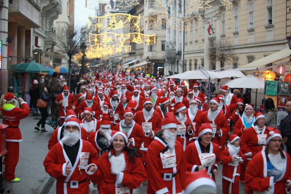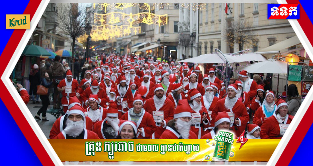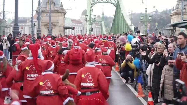 អ្នករត់ប្រណាំងកម្មវិធី Santa Run សរុប៤,៥០០នាក់បានមក ជួបជុំគ្នាតាមដងផ្លូវមួយចំនួននៅទីក្រុង Budapest ដើម្បីផ្សារភ្ជាប់កីឡារនិងការរស់នៅក្នុងរដូវរងា