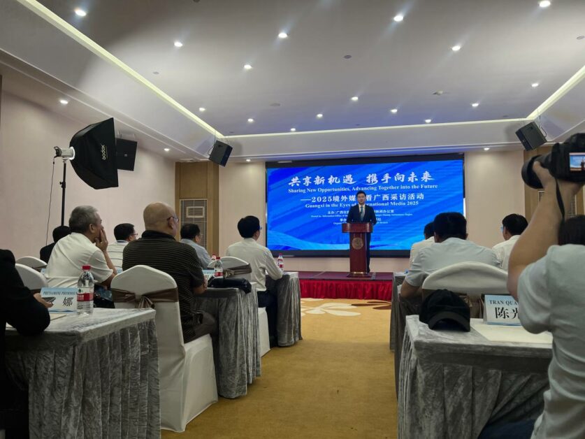 នៅថ្ងៃទី២៥ ខែសីហា ឆ្នាំ២០២៥-កម្មវិធី ខេត្តក្វាងស៊ីក្នុងក្រសែភ្នែករបស់ប្រព័ន្ធផ្សព្វផ្សាយអន្តរជាតិឆ្នាំ២០២៥ ក្រោមប្រធានបទ «ការចែករំលែកឱកាសថ្មីនៃយុគសម័យបញ្គាសិប្បនិម្មិត និងធ្វើការរួមគ្នាទៅអនាគត» ត្រូវបានសម្ពោធជាផ្លូវការនៅទីក្រុងឆុងហ្សូ ខេត្តក្វាងស៊ី របស់ប្រទេសចិន ដោយមានអ្នកសារព័ត៌មានកម្ពុជា និងអ្នកសារព័ត៌មានមកពីបណ្តាប្រទេសផ្សេងទៀតនៅអាស៊ានចូលរួមសរុបចំនួន ២៧នាក់ដែលសុទ្ធតែអ្នកមកពីបណ្តាញផ្សព្វផ្សាយសំខាន់ៗ និងមានឥទ្ធិពលលើប្រព័ន្ធ។