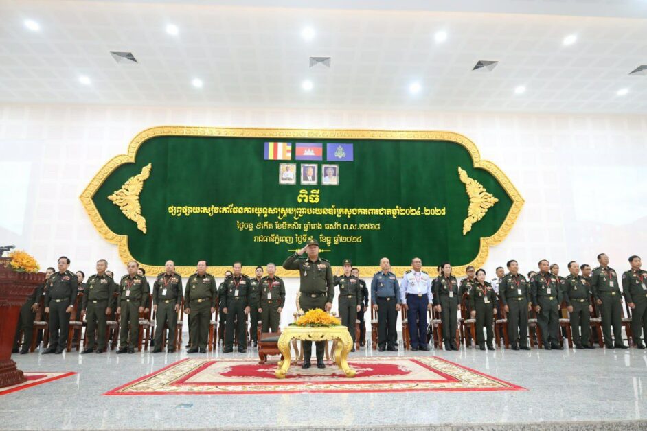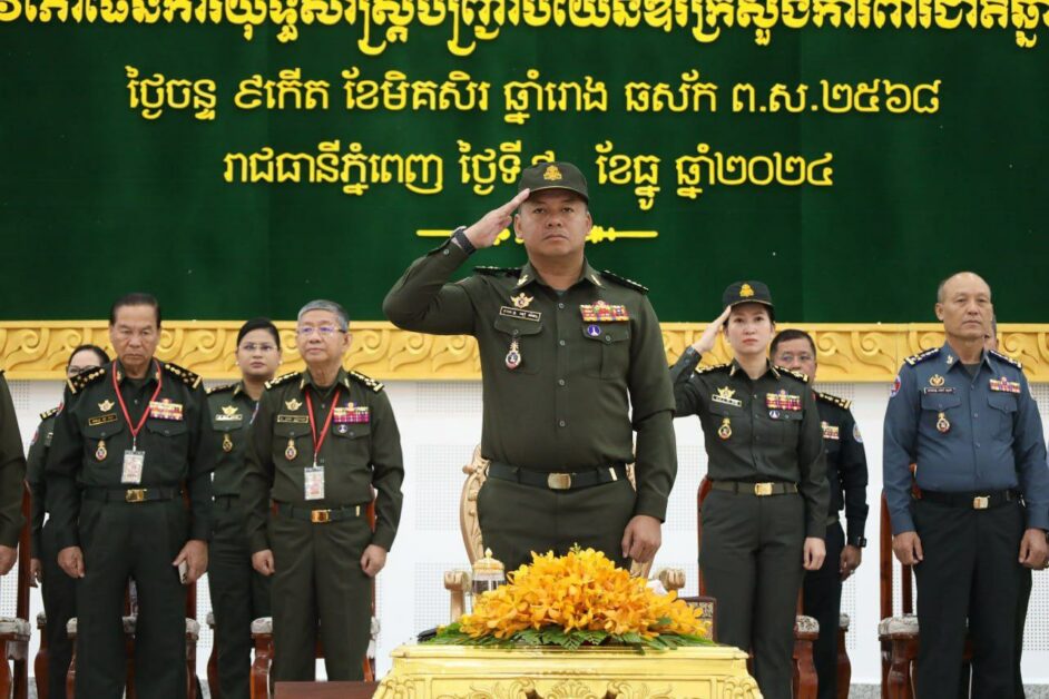 នាព្រឹកថ្ងៃទី ០៩ ខែធ្នូ ឆ្នាំ២០២៤ នៅសកលវិទ្យាល័យការពារជាតិ ឯកឧត្តម នាយឧត្ដមសេនីយ៍ ទៀ សីហា ឧបនាយករដ្ឋមន្ត្រី រដ្ឋមន្ត្រីក្រសួងការពារជាតិ បានអញ្ជើញជាអធិបតីក្នុងពិធីផ្សព្វផ្សាយសៀវភៅផែនការយុទ្ធសាស្ត្រ បញ្ជ្រាបយេនឌ័រ ក្រសួងការពារជាតិ ឆ្នាំ ២០២៤ –