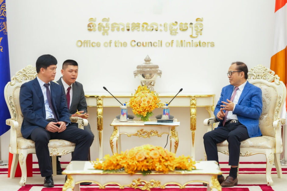 (រាជធានីភ្នំពេញ)៖ នាព្រឹកថ្ងៃទី២៣ ខែតុលា ឆ្នាំ២០២៥ ឯកឧត្តម វង្សី វិស្សុត ឧបនាយករដ្ឋមន្ត្រីប្រចាំការ រដ្ឋមន្ត្រីទទួលបន្ទុកទីស្តីការគណៈរដ្ឋមន្ត្រី បានទទួលពិភាក្សាការងារជាមួយអ្នកឧកញ៉ា លី ឃុនថៃប្រធានសមាគមសហព័ន្ធអ្នកវិនិយោគកម្ពុជា និងប្រតិភូក្រុមហ៊ុន Guangxi Mingdian Electric Co., Ltd. ចូលជួបសម្តែងការគួរសម និងពិភាក្សាការងារជុំវិញឱកាសវិនិយោគនៅក្នុងខេត្តកំពង់ធំ។