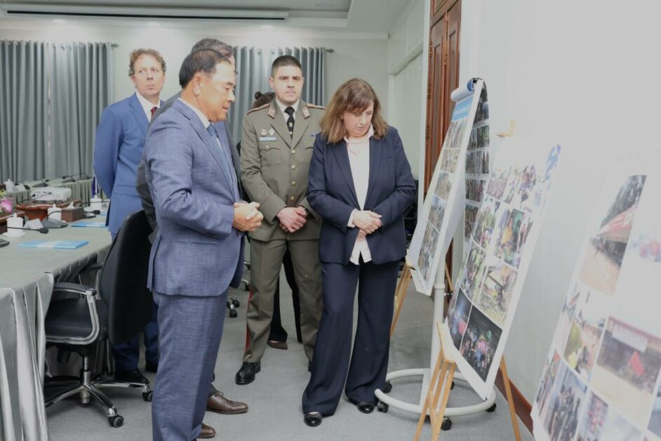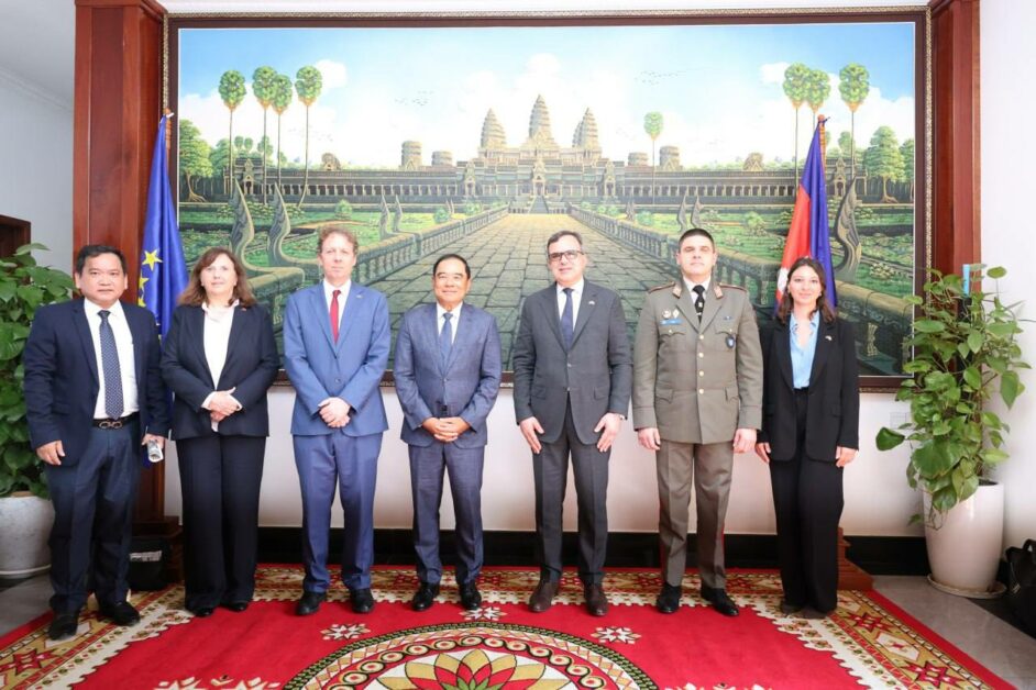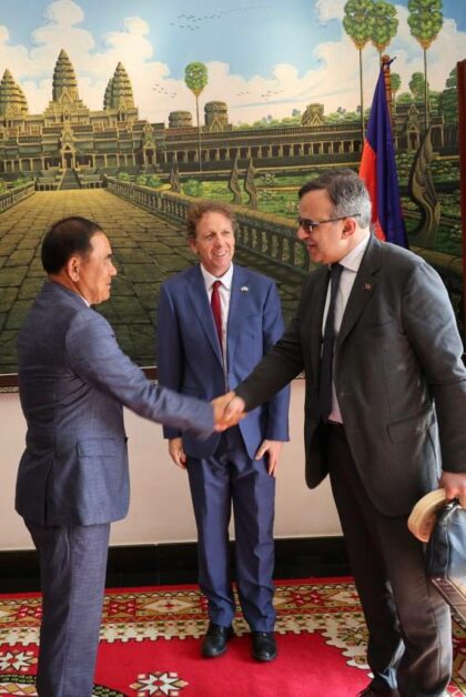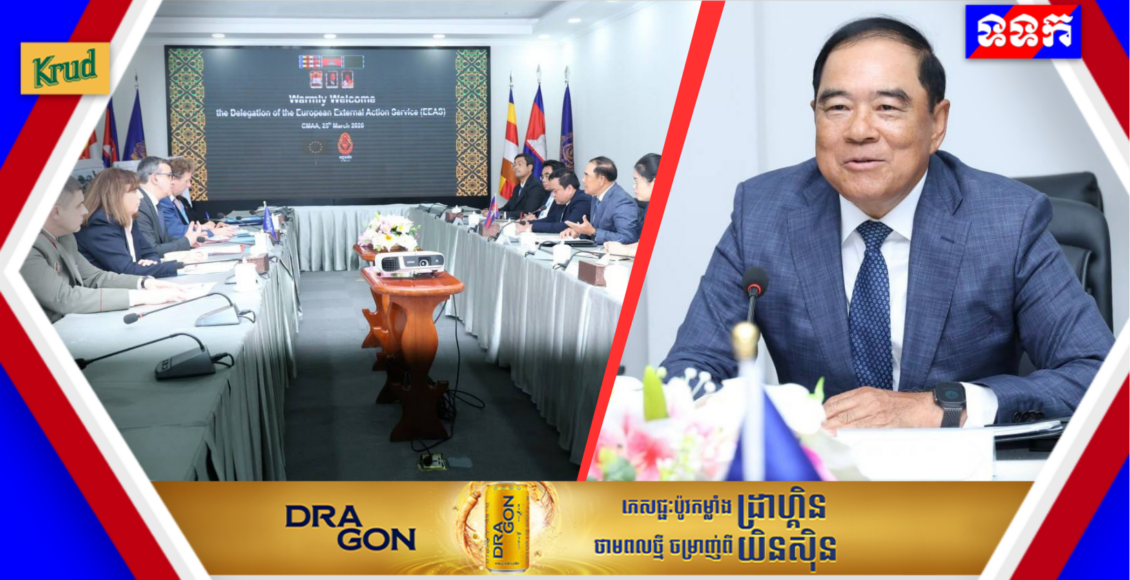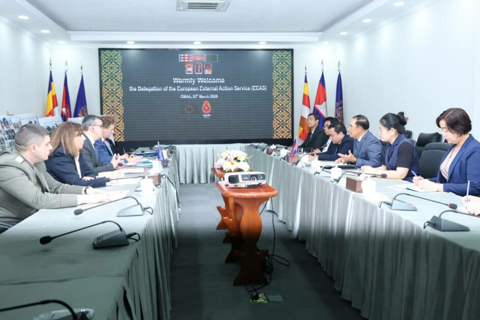 ថ្ងៃ​ទី២៥ ខែមីនា ឆ្នាំ២០២៦ នៅទីស្នាក់ការអាជ្ញាធរមីន ឯកឧត្តមបណ្ឌិត លី ធុជ ទេសរដ្ឋមន្រ្តី អនុប្រធានទី១ អាជ្ញាធរមីន បានទទួលជួបពិភាក្សាការងារជាមួយ លោក Cosmin Dobran នាយកទទួលបន្ទុកសន្តិភាព ភាពជាដៃគូ និងគ្រប់គ្រងវិបត្តិ នៃអង្គភាពសេវាកិច្ចការបរទេសរបស់សហភាពអ៊ឺរ៉ុប (European External Action Service_EEAS) និងគណៈប្រតិភូ ដើម្បីផ្លាស់ប្តូរយោបល់ពីស្ថានភាពព្រំដែននិងការគាំទ្រកិច្ចការបោសសម្អាតមីន។