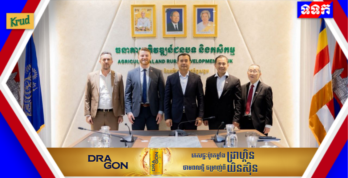 (ភ្នំពេញ)៖ នៅព្រឹកថ្ងៃអង្គារ ៩កើត ខែមាឃ ឆ្នាំម្សាញ់ សប្តស័ក ព.ស.២៥៦៩ ត្រូវនឹងថ្ងៃទី២៧ ខែមករា ឆ្នាំ ២០២៦ ឯកឧត្ដម​បណ្ឌិត​ កៅ​ ថាច​ ប្រតិភូ​ររាជរដ្ឋាភិបាលទទួល​បន្ទុក​ជា​អគ្គនាយក​ធនាគារ​អភិវឌ្ឍន៍​ជនបទ​ និង​កសិកម្ម​ (ARDB) បានអនុញ្ញាតជូនតំណាងក្រុមហ៊ុន Maple Leaf Farms ចូលជួបសម្តែងការគួសម និងពិភាក្សាការងារ នៅទីស្នាក់ការកណ្តាលធនាគារ ARDB ដោយមានការសម្របសម្រួលពីការិយាល័យសភាពាណិជ្ជកម្មអាមេរិក ប្រចាំនៅកម្ពុជា។