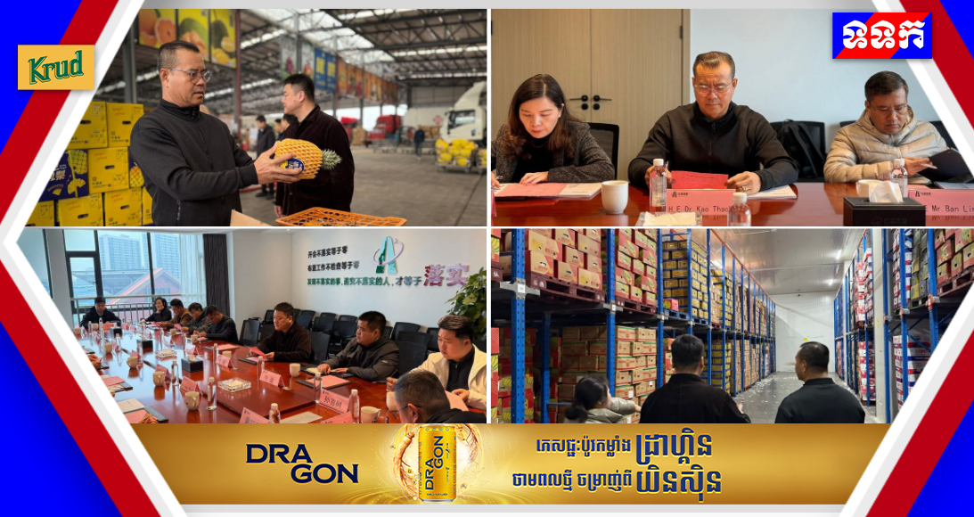 ឯកឧត្ដមបណ្ឌិត កៅ ថាច ជំរុញការនាំចេញផ្លែធុរេន និងខ្នុរខ្មែរ ទៅកាន់មជ្ឈមណ្ឌលបោះដុំ កសិផលដ៏ធំនៅទីក្រុងហ៊ូណាន ប្រទេសចិន