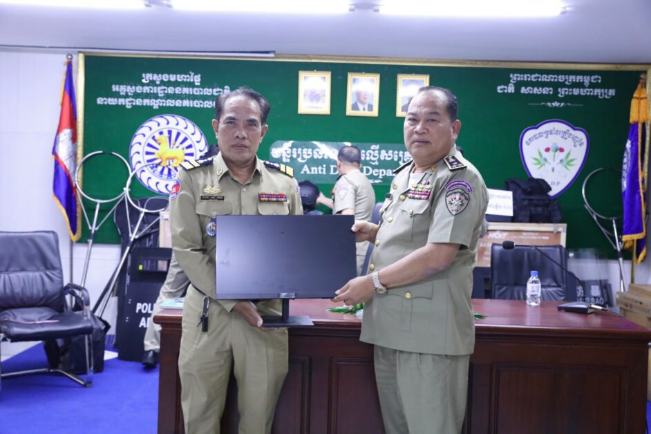 មុននឹងបញ្ចប់ ឯកឧត្ដមនាយកមន្ទីរប្រឆាំងគ្រឿងញៀន ក៏បានចែកសម្ភារៈឱ្យទៅតាមបណ្តាការិយាល័យទាំង១១ រួមមាន៖ អាវក្រោះ មួក និងស្រោមដៃ ក្នុងមួយការិយាល័យ ២០, ខែលការពារ ក្នុងមួយការិយាល័យ ១ខែល, អាវយឺត ក្នុងម្នាក់១អាវ សរុប ៨៥០អាវ, កុំព្យូទ័រលើតុ ក្នុងមួយការិយាល័យ ១គ្រឿង, ឧបករណ៍តេស្តសារធាតុញៀន ១០ឈុត និងឧបករណ៍ស្វែងរកសារធាតុញៀន ០៥ឈុត ជូនការិយាល័យ ក៦, កំព្យូទ័រយួរដៃ ជូន(ក១) ៥គ្រឿង និង៥គ្រឿងទៀត ជូនដល់ (ក៦) និងក្រុមជំនួយការ, ម៉ាស៊ីន កូពី ចំនួន ០២គ្រឿង ជូនការិយាល័យ ក១, ដងដែកសម្រាប់បុកចូល និងចាប់មនុស្ស ចំនួន០៣។