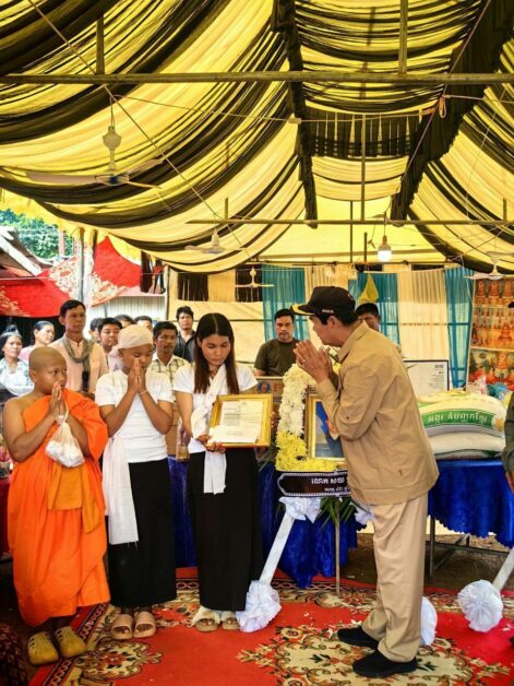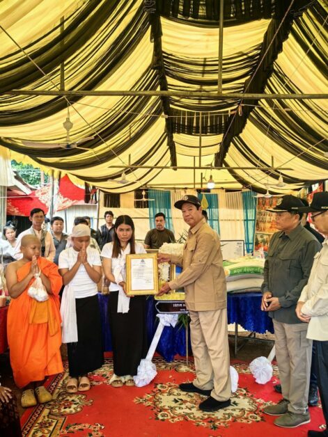 ឧត្តរមានជ័យ៖ នាព្រឹកថ្ងៃទី៣០ ខែកក្កដា ឆ្នាំ២០២៥ ឯកឧត្តមកិត្តិសង្គហបណ្ឌិត គន់ គីម អនុប្រធាន និងជាអគ្គលេខាធិការសមាគមអតីតយុទ្ធជកម្ពុជា បានអញ្ជើញគោរពវិញ្ញានក្ខន្ធសពវីរកងទ័ព និងនាំយកថវិកា ៤លានរៀលជូនគ្រួសារសព ព្រិន្ទបាលឯក សយ ប្រុស កងទ័ពចំណុះកងពលតូចអន្តរាគមន៍លេខ៨ កងពលធំអន្តរាគមន៍លេខ៣ក្នុងសមរភូមិឈ្លានពានពីកងទ័ពថៃ នៅខេត្តឧត្តរមានជ័យ។