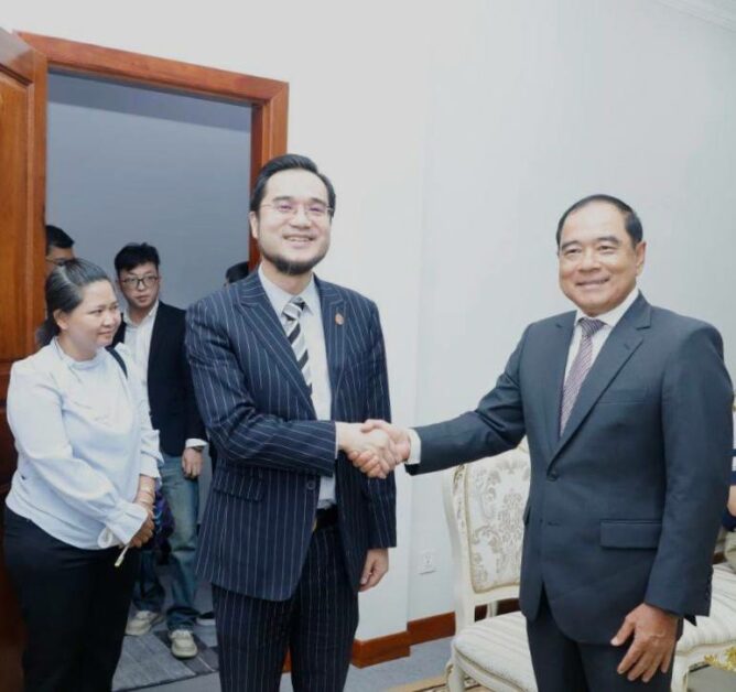 ថ្ងៃទី១៩ ខែមិថុនា ឆ្នាំ២០២៥ ឯកឧត្តមបណ្ឌិត លី ធុជ ទេសរដ្ឋមន្រ្តីទទួលបន្ទុកបេសកកម្មពិសេស បានអនុញ្ញាតឱ្យគណៈប្រតិភូវិនិយោគិនមកពីសាធារណរដ្ឋប្រជាមានិតចិន ដែលដឹកនាំដោយ លោក Wang Andy ស្ថាបនិក និងជាប្រធានប្រតិបត្តិសកលនៃ President Club (President Speech Union) ចូលជួបសម្តែងការគួរ និងពិភាក្សាការងារ។