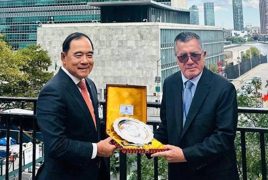 បុរីញូយ៉ក ថ្ងៃទី៩ ខែតុលា ឆ្នាំ២០២៤ ឯកឧត្តមបណ្ឌិត លី ធុជ ទេសរដ្ឋមន្រ្តី អនុប្រធានទី១ អាជ្ញាធរមីន និងជាប្រធានអនុសញ្ញាអូតាវ៉ាឆ្នាំ២០២៤ បានជួបប្រជុំទ្វេភាគីជាមួយ ឯកឧត្តម John M. Silk ឯកអគ្គរដ្ឋទូតប្រទេសប្រជុំកោះម៉ាស្សល (Marshall Islands) ប្រចាំអង្គការសហប្រជាជាតិ បុរីញូវយ៉ក សហរដ្ឋអាមេរិក ដើម្បីពិភាក្សាលើការចូលរួមរបស់ប្រជុំកោះម៉ាស្សល ជារដ្ឋភាគីពេញលេញនៃអនុសញ្ញាហាមប្រាមការប្រើប្រាស់មីនប្រឆាំងមនុស្ស (អនុសញ្ញាអូតាវ៉ា)។