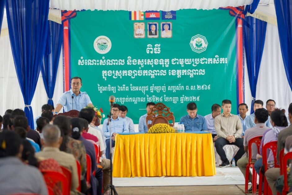 ខេត្កកណ្ដាល ៖ ឯកឧត្តមបណ្ឌិត កៅ ថាច ប្រតិភូរាជរដ្ឋាភិបាលទទួលបន្ទុកជាអគ្គនាយកធនាគារអភិវឌ្ឍន៍ជនបទ និងកសិកម្ម (ARDB) ព្រមទាំងសហការី នៅថ្ងៃអាទិត្យទី២៨ ខែកញ្ញា ឆ្នាំ២០២៥នេះ បានអញ្ជើញជាអធិបតីក្នុងពិធីសំណេះសំណាល និងសួរសុខទុក្ខជាមួយប្រជាកសិករស្រុកខ្សាច់កណ្តាល ខេត្តកណ្តាល ស្ថិតនៅក្នុងវិទ្យាល័យ ហ៊ុនសែន រ៉ូតាខ្សាច់កណ្ដាល។