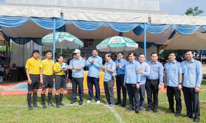 ខេត្តកណ្តាល÷ឯកឧត្តមបណ្ឌិត កៅ ថាច ប្រតិភូរាជរដ្ឋាភិបាលទទួលបន្ទុកជាអគ្គនាយកធនាគារអភិវឌ្ឍន៍ជនបទ និងកសិកម្ម ប្រធានក្រុមការងារចលនាយុវជនស្រុកខ្សាច់កណ្តាល ជាតំណាងដ៏ខ្ពង់ខ្ពស់ ឯកឧត្តមអគ្គបណ្ឌិតសភាចារ្យ អូន ព័ន្ធមុនីរ័ត្ន ឧបនាយករដ្ឋមន្ត្រី ប្រធានក្រុមការងាររាជរដ្ឋាភិបាលចុះមូលដ្ឋានខេត្តកណ្តាល នៅថ្ងៃទី១៧ ខែឧសភានេះបានអញ្ជើញជាអធិបតីពិធីបើកការប្រកួតកីឡាបាល់ ទាត់ពានរង្វាន់ ឯកឧត្តមអគ្គបណ្ឌិតសភាចារ្យ អូន ព័ន្ធមុនីរ័ត្ន ។