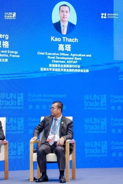 (ចិន)÷នារសៀលថ្ងៃទី៨ ខែកញ្ញា ឆ្នាំ២០២៥, តបតាមការអញ្ជើញរបស់តំណាងអង្គការសហប្រជាជាតិទទួល បន្ទុកផ្នែកពាណិជ្ជកម្ម និងការអភិវឌ្ឍ (United Nations Trade and Development – UNCTAD),ឯកឧត្តមបណ្ឌិត កៅ ថាច ប្រតិភូរាជ រដ្ឋាភិបាលទទួលបន្ទុកជាអគ្គនាយកធនាគារអភិវឌ្ឍន៍ជនបទ និងកសិកម្ម និងជាប្រធានសមាគមគ្រឹះស្ថានហិរញ្ញវត្ថុអភិវឌ្ឍន៍ក្នុងតំបន់អាស៊ី និងប៉ាស៊ីហ្វិកបានចូលរួមក្នុងកម្មវិធីបើកជាផ្លូវការនៃ ពិព័រណ៍អន្តរជាតិចិន សម្រាប់ការវិនិយោគ និងពាណិជ្ជកម្ម លើកទី២៥ និងបានចូលរួមធ្វើជាវាគ្មិនកិត្តិយសក្នុងកិច្ចពិភាក្សាជាន់ ខ្ពស់ (High-Level Plenary Discussion)នៃសន្និសីទស្តីពី “ការវិនិយោគសម្រាប់អនាគត” ដោយកិច្ចពិភាក្សាផ្តោតទៅលើចក្ខុវិស័យចំពោះយុទ្ធសាស្រ្តស្វែងរកប្រភពទុនសម្រាប់អនាគតនៃការវិនិយោ សកល, ការវិនិយោគលើហេដ្ឋារចនាសម្ព័ន្ធ និងថាមពលសម្រាប់អនាគត។