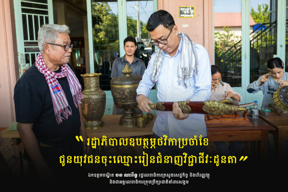 ឯកឧត្តមបណ្ឌិត ចន ណារិទ្ធ រដ្ឋលេខាធិការក្រសួងសេដ្ឋកិច្ច និងហិរញ្ញវត្ថុ និងជាអគ្គលេខាធិការ ក្រុមប្រឹក្សាជាតិគាំពារសង្គម នៅថ្ងៃចន្ទ ទី១៣ ខែតុលា ឆ្នាំ២០២៥ បានមានប្រសាសន៍ លើកទឹកចិត្ត ដល់យុវជន ជាពិសេសពលករដែលត្រឡប់ពីប្រទេសថៃ ងាកមកចាប់អារម្មណ៍ជំនាញវិជ្ជាជីវៈដូនតាដែលរដ្ឋាភិបាលកំពុងផ្តល់ជូន ព្រោះថាជំនាញនេះ និងអាចបង្កើនប្រាក់ចំណូល ក៏ដូចជាចូលរួមអភិរក្ស និងលើកស្ទួយជំនាញសិល្បៈវប្បធម៌ពីដូនតា។