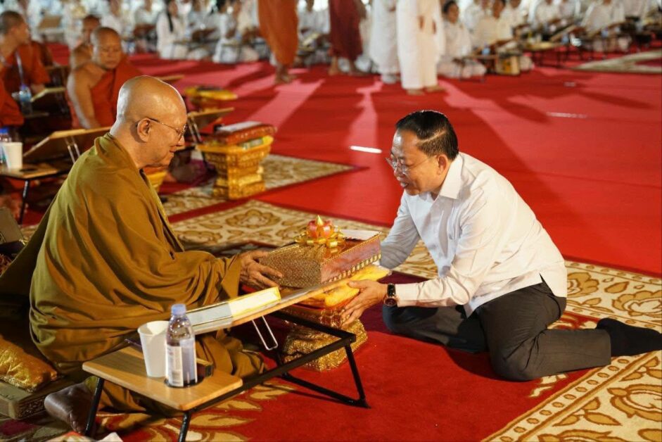 ផ្អែកតាមក្រមរដ្ឋធម្មនុញ្ញនៃព្រះរាជាណាចក្រកម្ពុជា ព្រះពុទ្ធសាសនាគឺជាសាសនារបស់រដ្ឋ ដែលត្រូវបានយកចិត្តទុកដាក់បំផុតពីសំណាក់ សម្តេចអគ្គមហាសេនាបតីតេជោ ហ៊ុន សែន ប្រធានព្រឹទ្ធសភា សម្តេចកិត្តិព្រឹទ្ធបណ្ឌិត ប៊ុន រ៉ានី ហ៊ុនសែន សម្តេចមហាបវរធិបតី ហ៊ុន ម៉ាណែតនាយករដ្ឋមន្ត្រី និងលោកជំទាវបណ្ឌិត ពេជ ចន្ទមុន្នី ហ៊ុនម៉ាណែត ។ រាជរដ្ឋាភិបាលកម្ពុជាបានចេញសេចក្តីសម្រេចចំនួន៣ចំណុច ដែលជាការតម្កើងដ៏អស្ចារ្យក្នុងព្រះពុទ្ធសាសនាខ្មែររួមមាន ៖(១)ការបង្កើតក្រុមជំនុំព្រះត្រៃបិដកឡើងវិញ ដើម្បីផ្ទៀងផ្ទាត់គម្ពីរក្បួនច្បាប់ពុទ្ធសាសនា និងបកប្រែអដ្ឋកថា ដីកា យោជនា ដែលជាសេចក្តីពន្យល់របស់ព្រះអរហន្តលើគម្ពីរព្រះត្រៃបិដកជាពុទ្ធវចនៈ (២)រៀបចំពិធីសូត្រព្រះត្រៃបិដកខ្មែររៀងរាល់ ៥ឆ្នាំម្តងនៅប្រាសាទអង្គរវត្ត ឬភ្នំព្រះរាជទ្រព្យ (ទីតាំងតម្កល់ព្រះបរមសារីរិកធាតុ) និង (៣)រៀបចំពិធីបុណ្យរំលឹកការបកប្រែគម្ពីរព្រះត្រៃបិដក និងរំលឹកដល់គុណក្រុមជំនុំព្រះត្រៃបិដក។