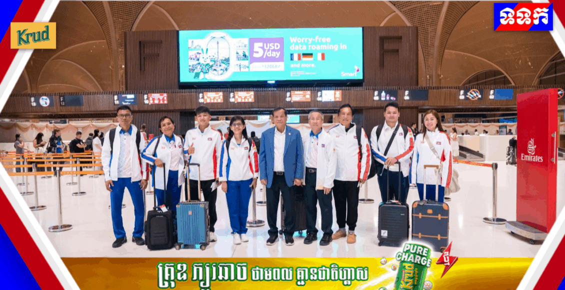 ឯកឧត្តម បណ្ឌិតទេសរដ្ឋមន្ដ្រី ថោង ខុន ប្រធាន គណៈកម្មាធិការជាតិ អូឡាំពិកកម្ពុជា(NOCC) និងជាប្រធានប្រតិភូកីឡាកម្ពុជា អមដំណើរដោយ ឯកឧត្តម វ៉ាត់ ចំរើន រដ្ឋលេខាធិការ និងជាអគ្គលេខាធិការ NOCC តំណាងដ៏ខ្ពង់ខ្ពស់របស់ឯកឧត្តមបណ្ឌិតសភាចារ្យ ហង់ជួន ណារ៉ុន ឧបនាយករដ្ឋមន្ដ្រី រដ្ឋមន្រ្ដីក្រសួងអប់រំ យុវជន និងកីឡា ព្រមទាំងមន្ដ្រីរដ្ឋបាលមួយចំនួន នៅរាត្រីអាទិត្យនេះ បានធ្វើដំណើរទៅ ប្រទេសបារ៉ែន ដើម្បីចូលរួមព្រឹត្តិការណ៍ កីឡាយុវជនអាស៊ី លើកទី៣ ឆ្នាំ២០២៥ ដែលនឹងប្រព្រឹត្តទៅ ចាប់ពីថ្ងៃទី២២-៣១ ខែតុលាខាងមុខ។