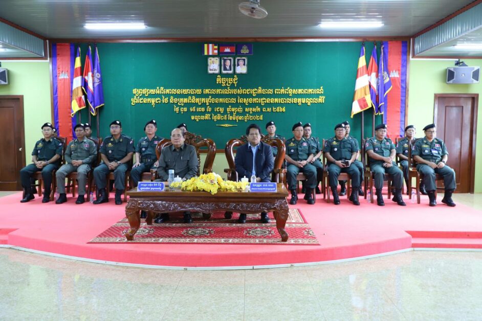 ខេត្តមណ្ឌលគិរី ៖ នាព្រឹកថ្ងៃទី២៥ ខែមិថុនា ឆ្នាំ២០២៥ ឯកឧត្តមបណ្ឌិត ម៉ក់ ជីតូ រដ្ឋលេខាធិការក្រសួងមហាផ្ទៃ និងលោក ចាន់ រតនា អភិបាលរងខេត្តមណ្ឌលគិរី បានអញ្ជើញដឹកនាំកិច្ចប្រជុំផ្សព្វផ្សាយ សភាពការណ៍ពាក់ព័ន្ធព្រំដែនកម្ពុជា-ថៃ និងជួបសំណេះសំណាលជាមួយថ្នាក់ដឹកនាំ និងមន្រ្តីនគរបាលជាតិ នៃស្នងការដ្ឋាននគរបាលខេត្ត រួមទាំងត្រួតពិនិត្យយុទ្ធោបករណ៍ ដែលបម្រើដល់ភារកិច្ចប្រចាំថ្ងៃរបស់កងកម្លាំង ដែលប្រព្រឹត្តទៅស្នងការដ្ឋាននគរបាលខេត្តមណ្ឌលគិរី។