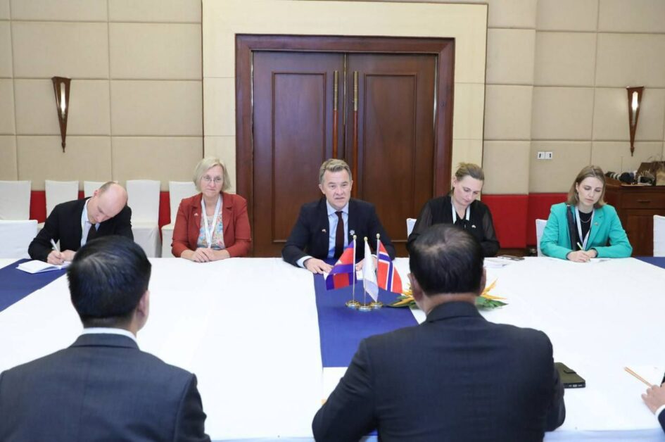 (សៀមរាប) ថ្ងៃទី២៥ ខែវិច្ឆិកា ឆ្នាំ២០២៤ ឯកឧត្តមបណ្ឌិត លី ធុជ ទទួលជំនួបទ្វេភាគីជាមួយ ឯកឧត្តម Andreas Motzfeldt Kravik អនុរដ្ឋមន្រ្តីការបរទេសនៃប្រទេសន័រវេស ដែលជំនួបទ្វេភាគីនេះ មានការចូលរួមពី ឯកឧត្តម Astrid Helle ឯកអគ្គរាជទូតន័រវេសប្រចាំនៅប្រទេសថៃ និងកម្ពុជា។