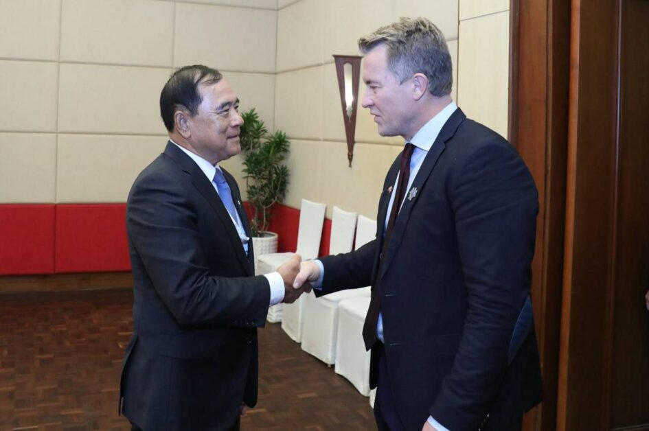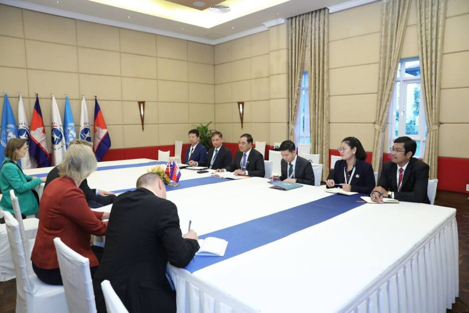 (សៀមរាប) ថ្ងៃទី២៥ ខែវិច្ឆិកា ឆ្នាំ២០២៤ ឯកឧត្តមបណ្ឌិត លី ធុជ ទទួលជំនួបទ្វេភាគីជាមួយ ឯកឧត្តម Andreas Motzfeldt Kravik អនុរដ្ឋមន្រ្តីការបរទេសនៃប្រទេសន័រវេស ដែលជំនួបទ្វេភាគីនេះ មានការចូលរួមពី ឯកឧត្តម Astrid Helle ឯកអគ្គរាជទូតន័រវេសប្រចាំនៅប្រទេសថៃ និងកម្ពុជា។