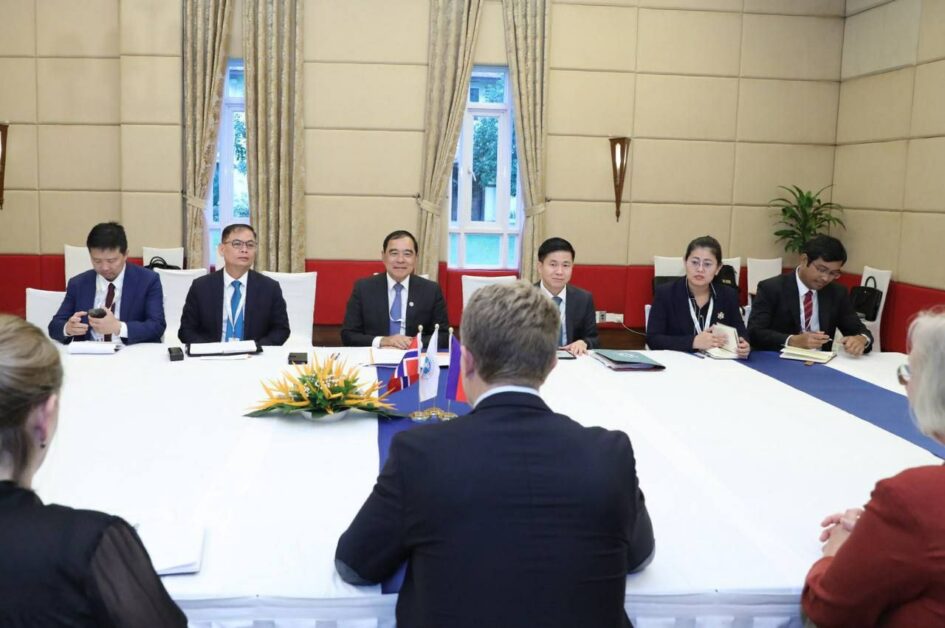 ឯកឧត្តមបណ្ឌិត លី ធុជ ទទួលជំនួបទ្វេភាគីជាមួយ ឯកឧត្តម Andreas Motzfeldt Kravik អនុរដ្ឋមន្រ្តីការបរទេសនៃប្រទេសន័រវេស ក្នុងអំឡុងពេលកិច្ចប្រជុំកំពូលសៀមរាប-អង្គរស្តីពីពិភពលោកមួយដែលគ្មានមីន