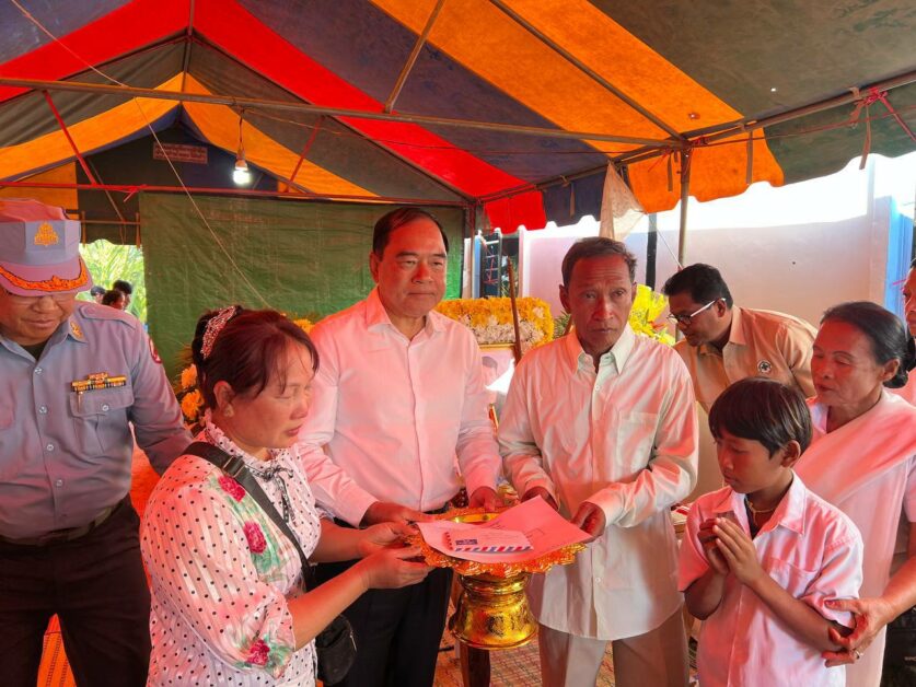 ឯកឧត្តមបណ្ឌិត លី ធុជ ពាំនាំនូវសាររំលែកមរណទុក្ខពី សម្តេចធិបតី និងលោកជំទាវបណ្ឌិត ជូនចំពោះក្រុមគ្រួសារនៃសព លោក ពៅ នេពីន ស្ថិតក្នុងស្រុកស្វាយចេក ខេត្តបន្ទាយមានជ័យ ដែលគ្រោះថ្នាក់បាត់បង់ជីវិតក្នុងឧបទ្ទវហេតុផ្ទុះមីន។