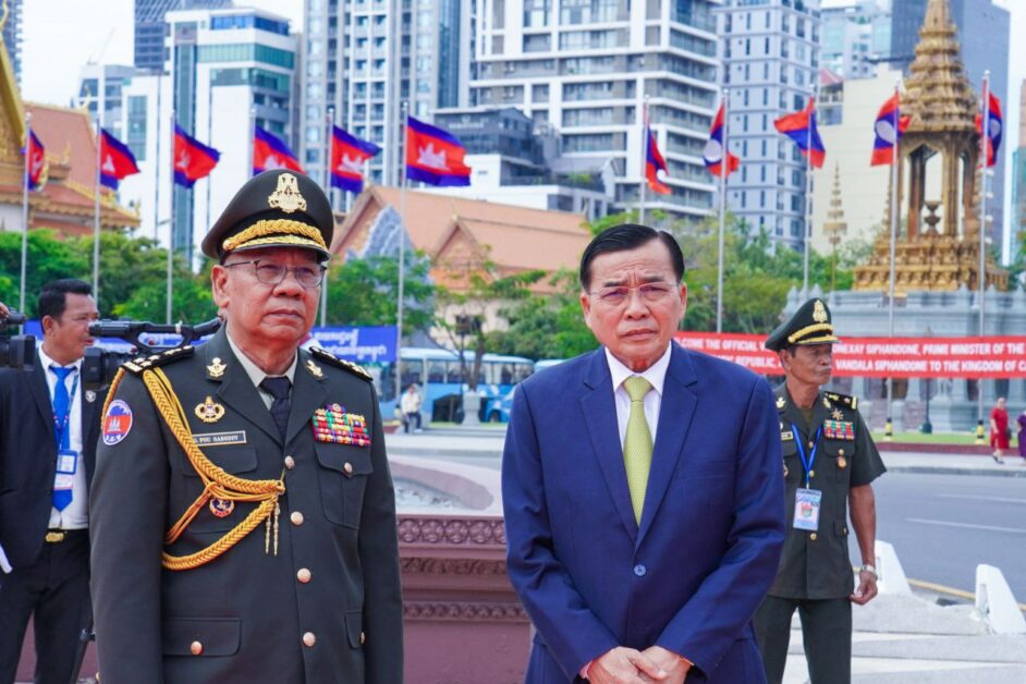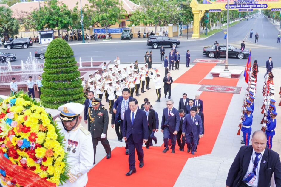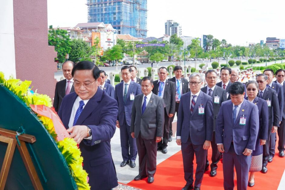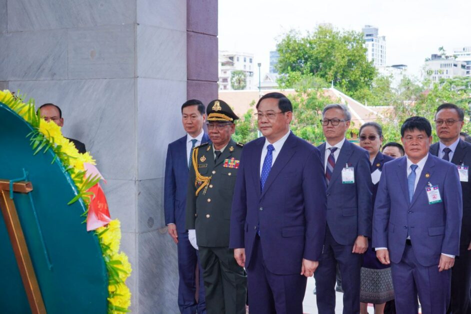 ឯកឧត្តមបណ្ឌិត សនសៃ ស៊ីផាន់ដន នាយករដ្ឋមន្ត្រី នៃសាធារណរដ្ឋប្រជាធិបតេយ្យ ប្រជាមានិតឡាវ អញ្ជើញដាក់កម្រងផ្កាគោរពវិញ្ញាណក្ខន្ធនៅវិមានឯករាជ្យ និងថ្វាយកម្រងផ្កាគោរពព្រះវិញ្ញាណក្ខន្ធ ព្រះករុណា “ព្រះបរមរតនកោដ្ឋ” នៅមណ្ឌបសួនច្បារខាងកើត វិមានឯករាជ្យ ក្នុងអំឡុងពេលបំពេញទស្សនកិច្ចនៅកម្ពុជា