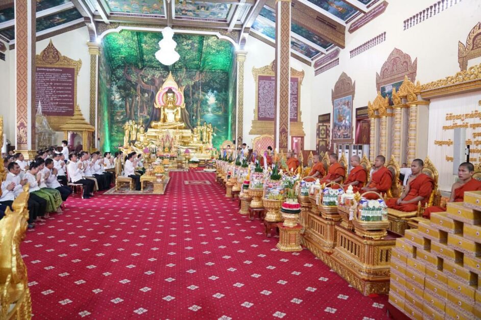 គោរពតាមគន្លងប្រពៃណីព្រះពុទ្ធសាសនា ឯកឧត្តម រដ្ឋមន្រ្តី ចាយ បូរិននិង លោកជំទាវ ករុណាសិរីសុវឌ្ឍិនី លុយ គន្ធី អគ្គមហាឧបាសិកាពុទ្ធសាសនូបត្ថម្ភក៍ ព្រមទាំងក្រុមគ្រួសារ បានអញ្ជើញអុជទៀនធូប ប្រគេនគន្ធពិដោរ ថ្វាយបង្គំព្រះពុទ្ធបដិមា និងសម្តេចព្រះពុទ្ធជ័យមុនីបណ្ឌិត ឃឹម សន សម្តេចព្រះសង្ឃនាយករងទី៣ និងជាព្រះគ្រូសូត្រស្តាំ និងថេរានុថេរគ្រប់ព្រះអង្គ ដែលគង់ក្នុងវត្តបទុមវតីរាជវរារាម បានសមាទានសីល រម្លឹកដល់គុណបុណ្យព្រះរតនៈត្រៃយ៍ព្រះពុទ្ធសាសនា ពិសេសរម្លឹកដល់ព្រះសម្មាសម្ពុទ្ធព្រះបរមគ្រូនៃយើង ដែលព្រះអង្គបានត្រាស់ដឹងនូវអនុត្តរៈសម្មាសម្ពុទ្ធធិញាណ និងព្រះធម៌វិន័យដ៏វិសេសវិសាល បន្សល់ទុកឱ្យពុទ្ធបរិស័ទគ្រប់ជំនាន់ បានគោរពប្រតិបត្តិជាដរាបរៀងមក។