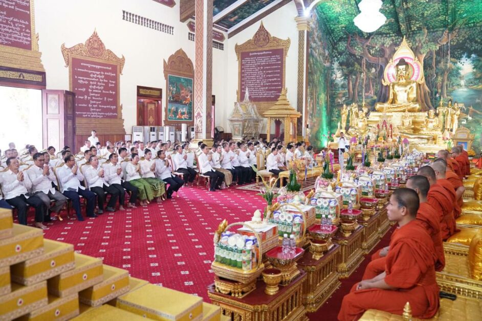 ពិធីបុណ្យកាន់បិណ្ឌវេនទី៣ នាថ្ងៃពុធ ៣ រោច ខែភទ្របទ ឆ្នាំម្សាញ់ សប្តស័ក ពស ២៥៦៩ ត្រូវនឹងថ្ងៃទី១០ ខែកញ្ញា ឆ្នាំ២០២៥ លោកជំទាវ ករុណាសិរីសុវឌ្ឍិនី លុយ គន្ធី អគ្គមហាឧបាសិកាពុទ្ធសាសនូបត្ថម្ភក៍ ដែលជាមាតាបង្កើតនិងជាម្តាយក្មេក ឯកឧត្តម រដ្ឋមន្រ្តី ចាយ បូរិននិង លោកជំទាវ ព្រមទាំងក្រុមគ្រួសារ រួមជាមួយ មន្រ្តីរាជការក្រោមឱវាទ នៃក្រសួងធម្មការនិងសាសនា បានប្រគេនយាគូ រាប់បាត្រ និងវេរភត្តាហារ និមន្តព្រះសង្ឃ ដារបង្សុកូលពហូឆ្លង ដើម្បីជាកិច្ចឧទ្ទិសមនុញ្ញផល មហាកុសលផលបុណ្យជូនចំពោះឧកញ៉ា មហាសប្បុរសធម្មសិរីញាណ ចាយ ស៊ាងអុី អគ្គមហាឧបាសកពុទ្ធសាសនូបត្ថម្ភក៍ ដែលត្រូវជាឪពុកបង្កើត ឯកឧត្តមរដ្ឋមន្រ្តី ចាយ បូរិន និងញាតិកាទាំង៧សន្តាន ព្រមទាំងសូមឧទ្ទិសកុសលផលបុណ្យជូនចំពោះវិញ្ញាណក្ខន្ធវីរៈកងទ័ពដ៏អង់អាចក្លាហានដែលបានពលីក្នុងបុព្វហេតុជាតិ ការពារបូរណភាពទឹកដី ក្នុងអំឡុងពេលនៃជម្លោះព្រំដែន កម្ពុជា-ថៃ សូមបានទៅកាន់លោកខាងមុខសូមជួបតែសេចក្តីស្ងប់ក្នុងសុខគតិភពជារៀងរហូត។