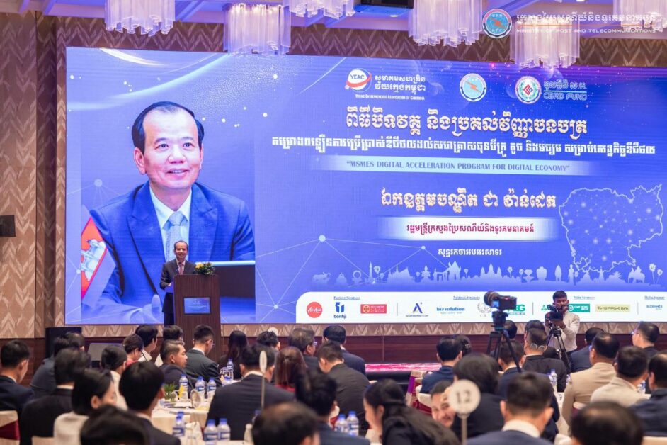 ឯកឧត្តម ជា វ៉ាន់ដេត រដ្ឋមន្ត្រីក្រសួងប្រៃសណីយ៍និងទូរគមនាគមន៍ (ក.ប.ទ.) បានអញ្ជើញជាអធិបតីដ៏ខ្ពង់ខ្ពស់ក្នុង «ពិធីបិទវគ្គ និងប្រគល់វិញ្ញាបនបត្រជូនសិក្ខាកាមនៃគម្រោងពន្លឿនការប្រើប្រាស់ឌីជីថលដល់សហគ្រាសធុនមីក្រូ តូច និងមធ្យម សម្រាប់សេដ្ឋកិច្ចឌីជីថល» ដែលជាកិច្ចសហប្រតិបត្តិការរវាងក្រសួងប្រៃសណីយ៍ និងទូរគមនាគមន៍ (ក.ប.ទ.) និងសមាគមសហគ្រិនវ័យក្មេងកម្ពុជា (YEAC) កាលពីថ្ងៃទី៣ ខែមេសា ឆ្នាំ២០២៦ ។