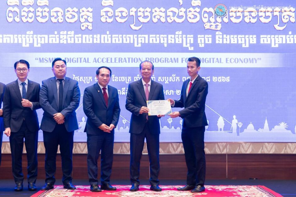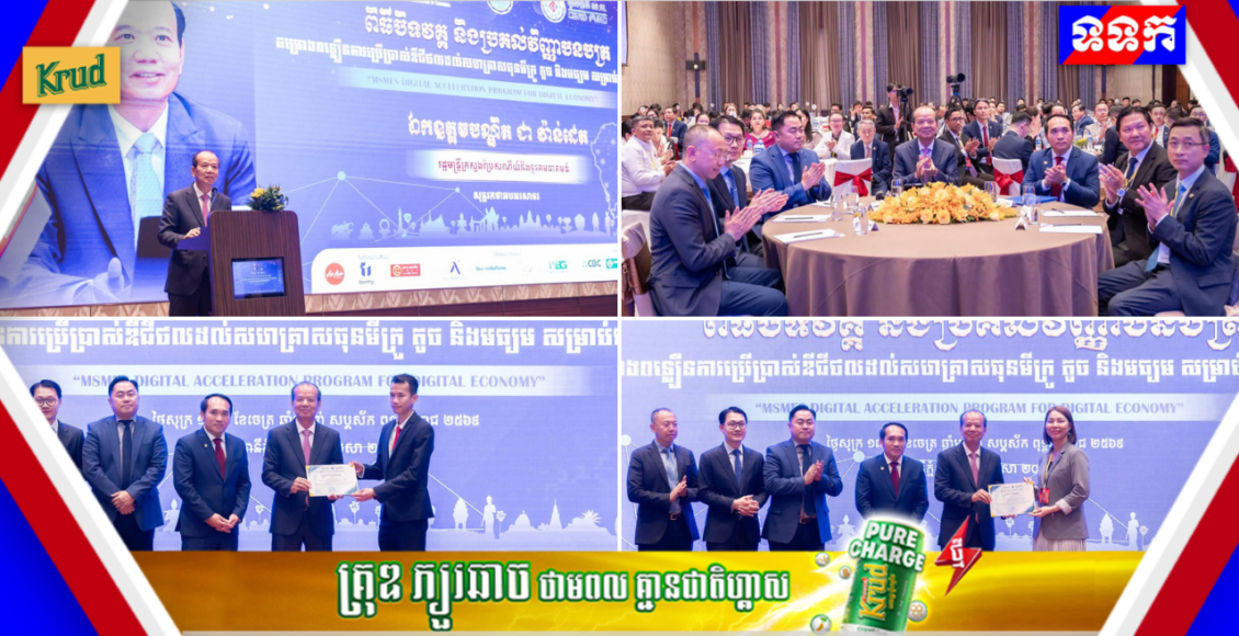 ឯកឧត្តមរដ្ឋមន្រ្តី ជា វ៉ាន់ដេត អញ្ជើញជាអធិបតីក្នុងពិធីបិទវគ្គ និងប្រគល់វិញ្ញាបនបត្រ នៃគម្រោងពន្លឿនការប្រើប្រាស់ឌីជីថលដល់សហគ្រាសធុនមីក្រូ តូច និងមធ្យម (MSMEs)