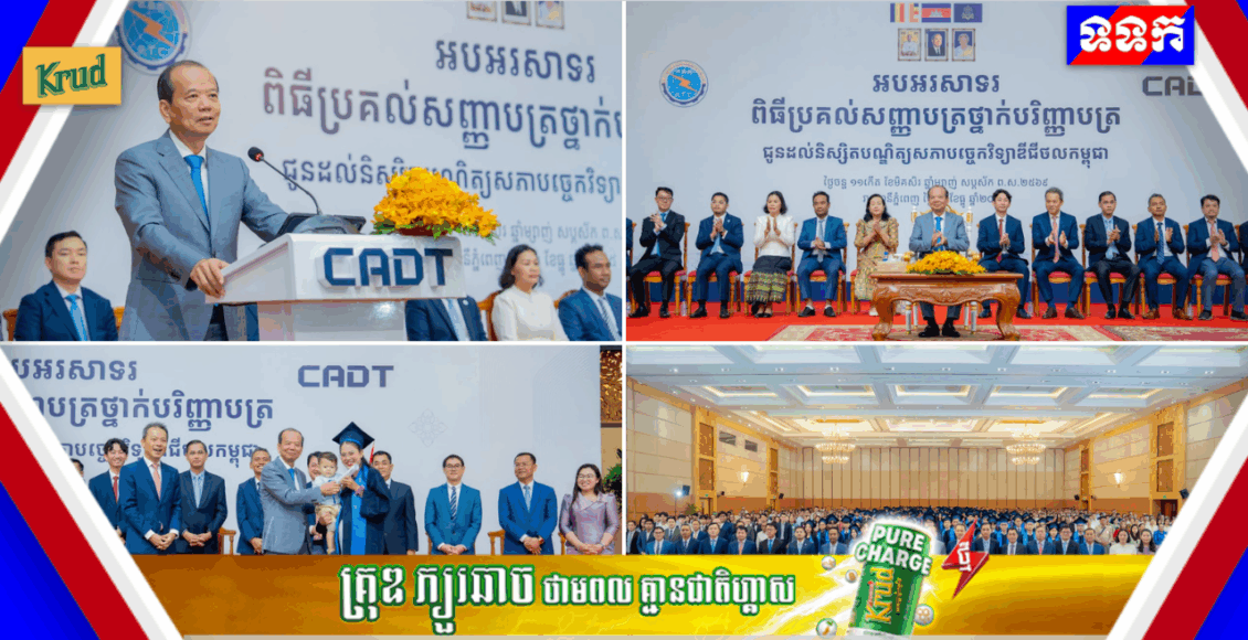 បានអញ្ជើញជាអធិបតីក្នុងពិធីប្រគល់សញ្ញាបត្រថ្នាក់បរិញ្ញាបត្រ ជូននិស្សិតនៃបណ្ឌិត្យសភាបច្ចេកវិទ្យាឌីជីថលកម្ពុជា ចំនួន ២៤២នាក់ ដោយមានការចូលរួមពី ថ្នាក់ដឹកនាំ ក.ប.ទ. ប្រធាន ប.ប.ឌ. ក្រុមប្រឹក្សាភិបាល ក្រុមប្រឹក្សាវិទ្យាសាស្រ្ត សាស្រ្តាចារ្យ និងបុគ្គលិកសិក្សា នៃ ប.ប.ឌ. តំណាងអង្គទូត ដៃគូរអភិវឌ្ឍន៍ គ្រឹះស្ថានអប់រំ និងអាណាព្យាបាលប្រមាណជាង ៩០០នាក់ នៅសណ្ឋាគារសុខាភ្នំពេញ។