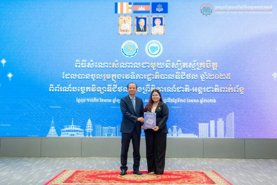 ឯកឧត្តម ជា វ៉ាន់ដេត រដ្ឋមន្រ្តីក្រសួងប្រៃសណីយ៍ និងទូរគមនាគមន៍ (ក.ប.ទ.) និងជាប្រធានគណៈកម្មាធិការរដ្ឋាភិបាលឌីជីថល (គ.រ.ឌ.) កាលពីរសៀលថ្ងៃទី២៨ ខែមករា ឆ្នាំ២០២៦ បានអញ្ជើញជាអធិបតីក្នុងពិធីសំណេះសំណាលជាមួយនិស្សិតស្ម័គ្រចិត្ត ដែលបានចូលរួមក្នុងវេទិការដ្ឋាភិបាលឌីជីថល ឆ្នាំ២០២៥ ពិព័រណ៍បច្ចេកវិទ្យាឌីជីថល និងព្រឹត្តិការណ៍ជាតិ-អន្តរជាតិពាក់ព័ន្ធ ដោយមានការអញ្ជើញចូលរួមពីថ្នាក់ដឹកនាំនិងមន្ត្រីរាជការ នៃ ក.ប.ទ. និងនិស្សិតស្ម័គ្រចិត្តប្រមាណ ៣១៥នាក់ នៅទីស្ដីការ ក្រសួងប្រៃសណីយ៍ និងទូរគមនាគមន៍ ។